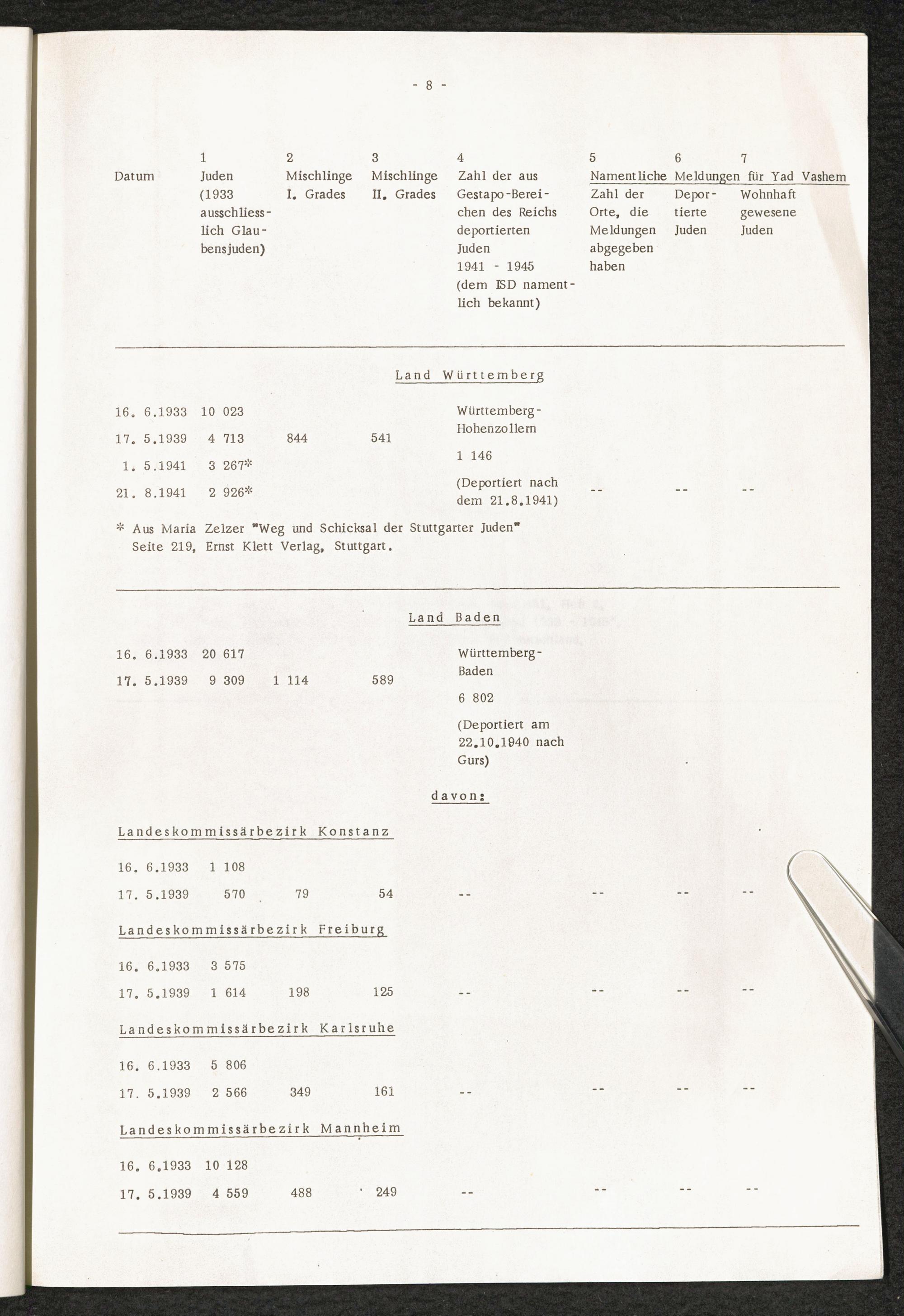 Analyse der Yad Vashem Meldungen : Eingereicht von den Städten und Gemeinden der Bundesrepublik in den Jahren 1962 - 1964 / International Tracing Service