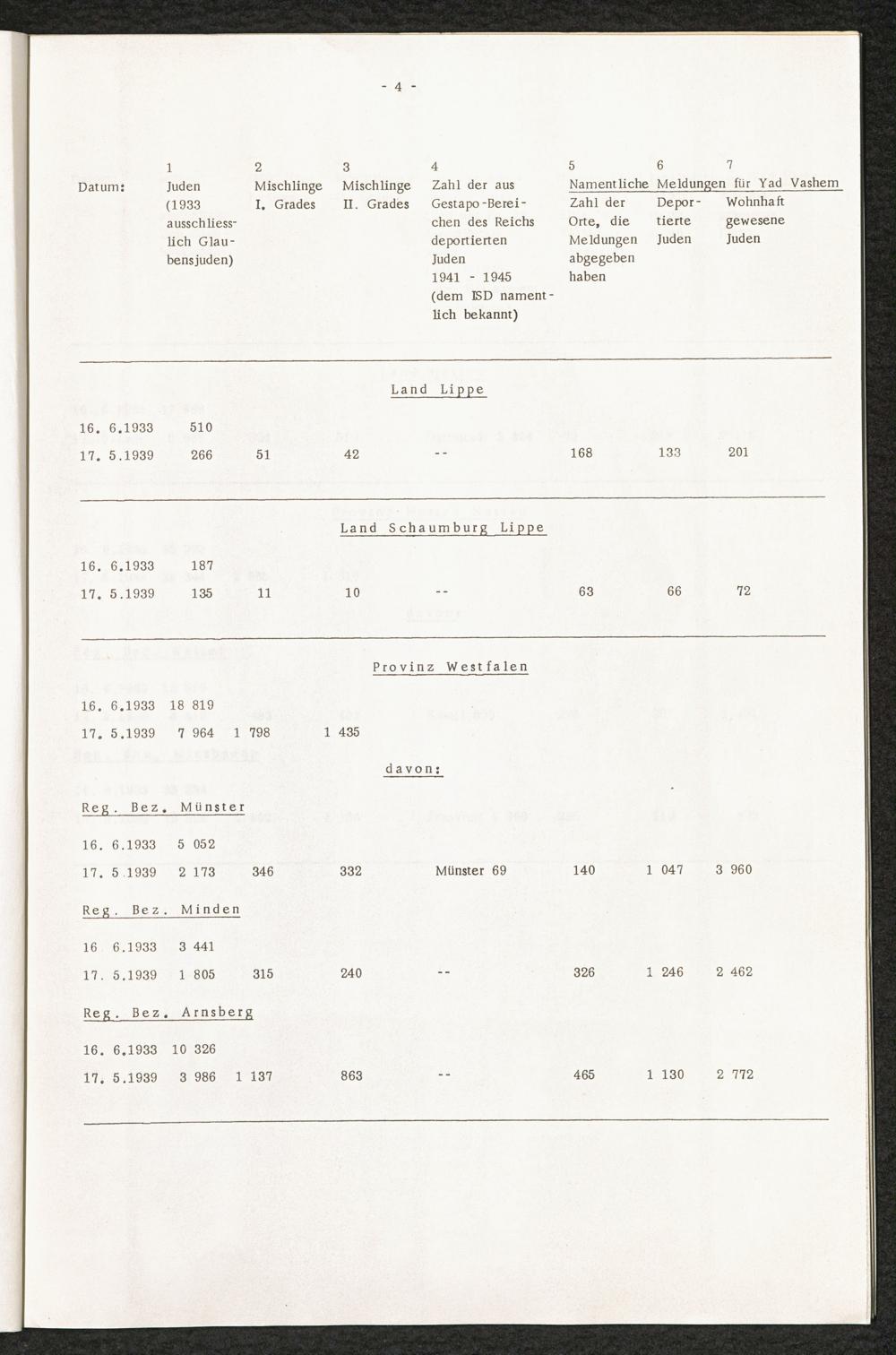 Analyse der Yad Vashem Meldungen : Eingereicht von den Städten und Gemeinden der Bundesrepublik in den Jahren 1962 - 1964 / International Tracing Service
