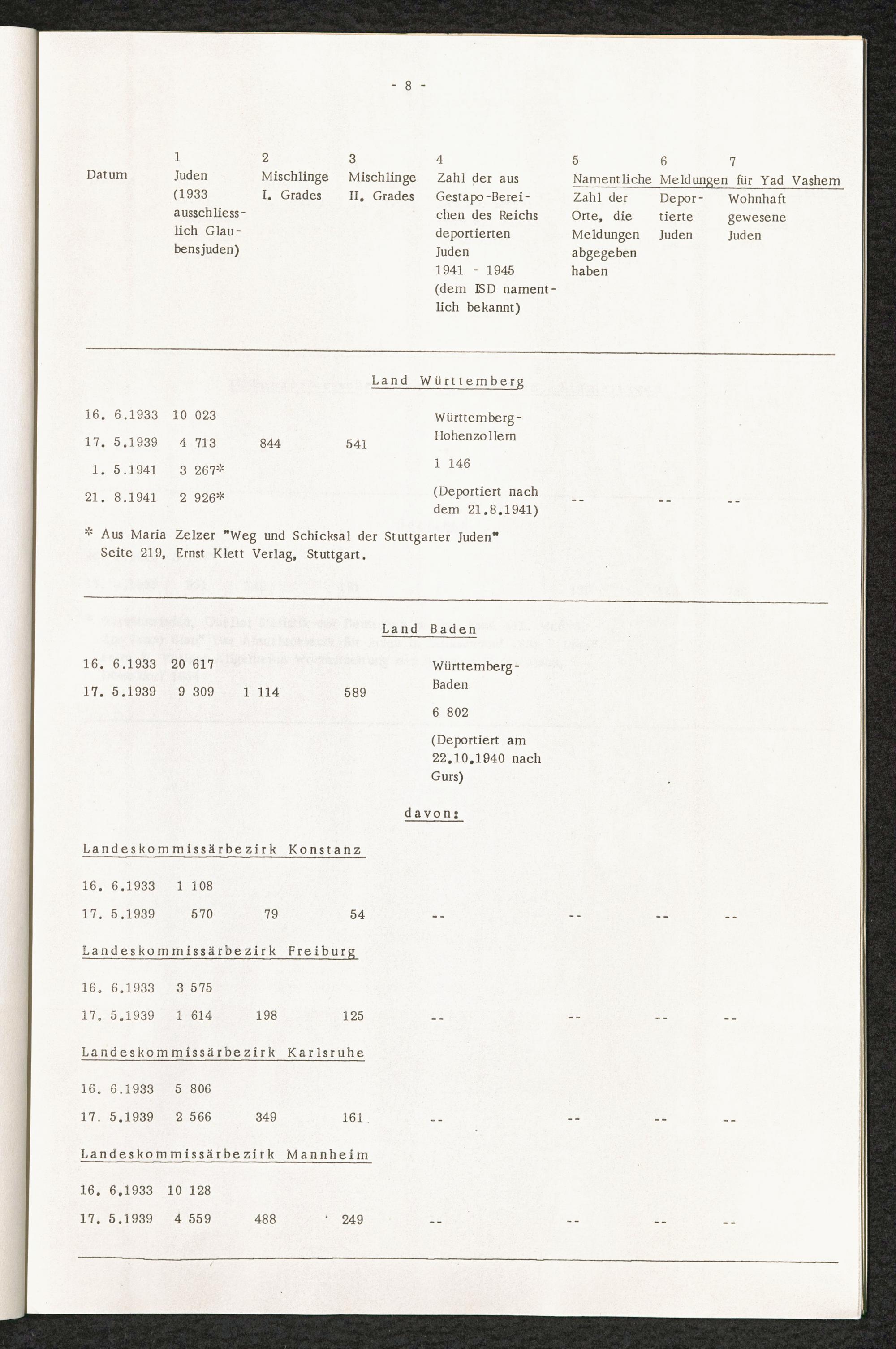 Analyse der Yad Vashem Meldungen : Eingereicht von den Städten und Gemeinden der Bundesrepublik in den Jahren 1962 - 1964 / International Tracing Service