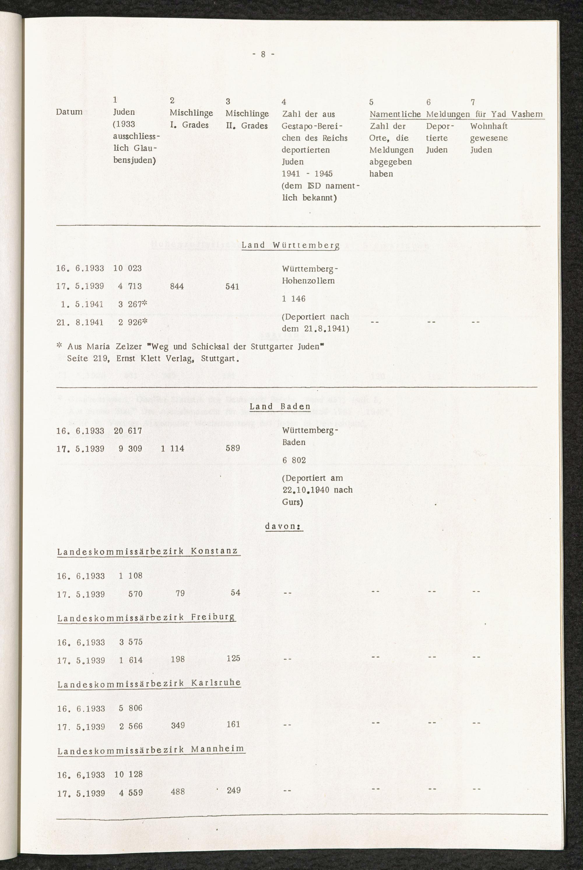Analyse der Yad Vashem Meldungen : Eingereicht von den Städten und Gemeinden der Bundesrepublik in den Jahren 1962 - 1964 / International Tracing Service
