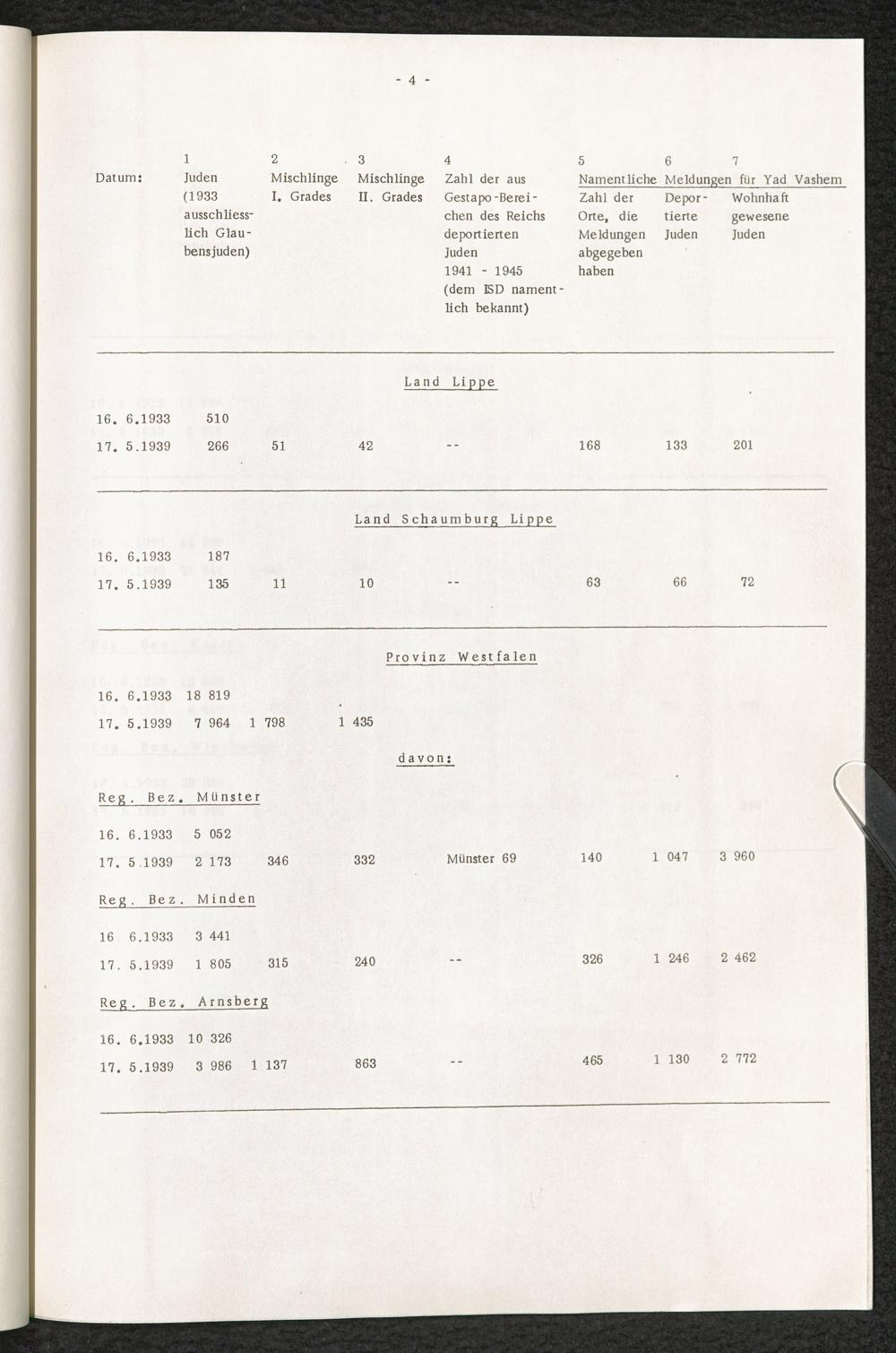 Analyse der Yad Vashem Meldungen : Eingereicht von den Städten und Gemeinden der Bundesrepublik in den Jahren 1962 - 1964 / International Tracing Service