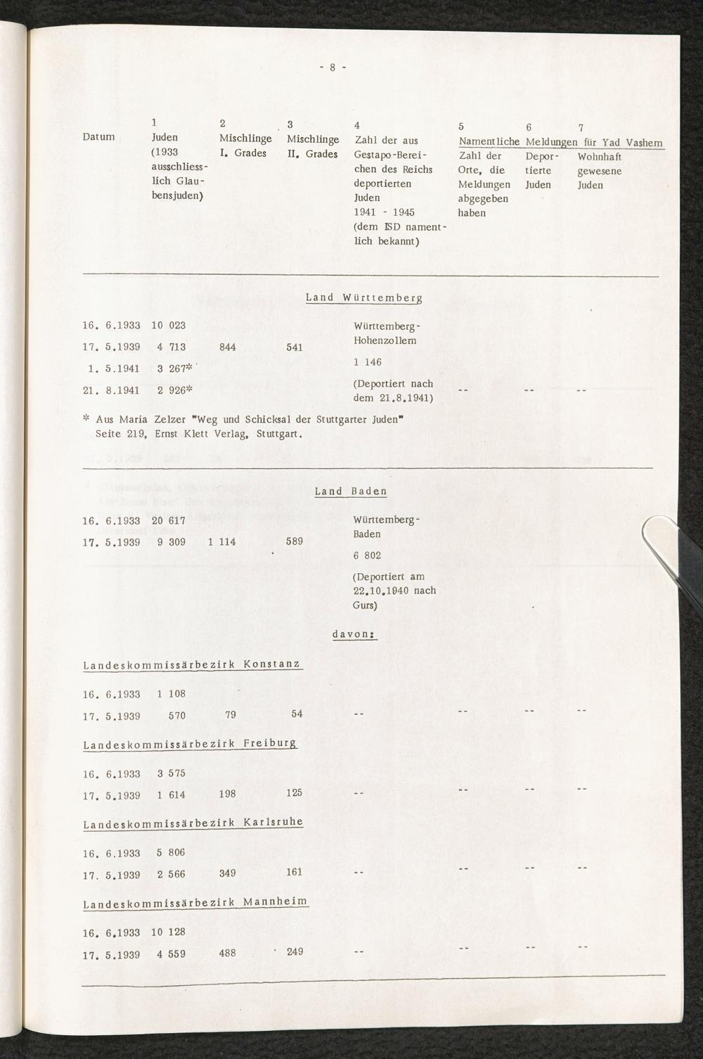 Analyse der Yad Vashem Meldungen : Eingereicht von den Städten und Gemeinden der Bundesrepublik in den Jahren 1962 - 1964 / International Tracing Service