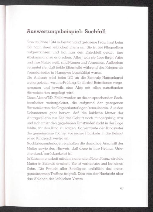 Internationaler Suchdienst Auswertungsbeispiel: Suchfall