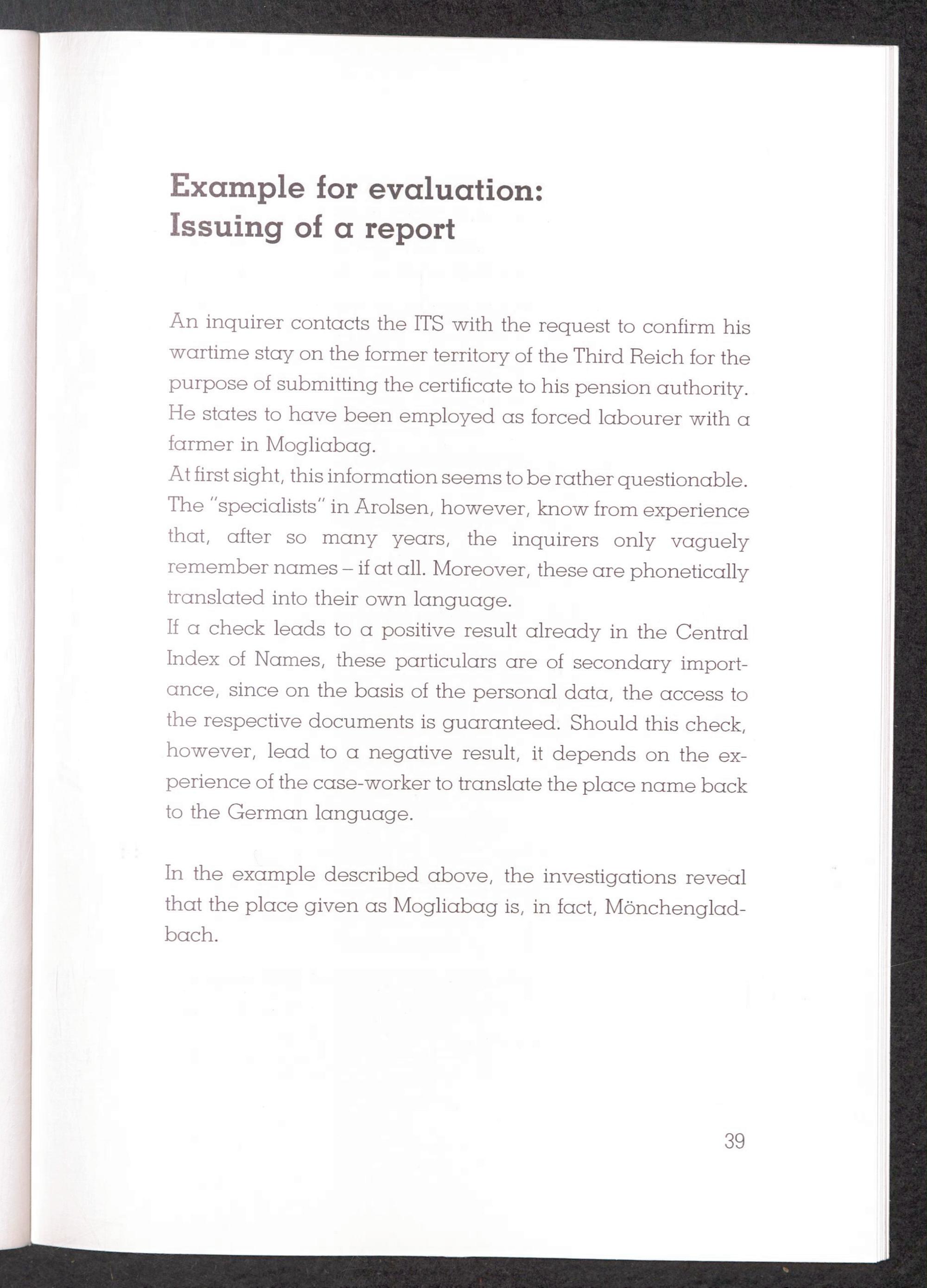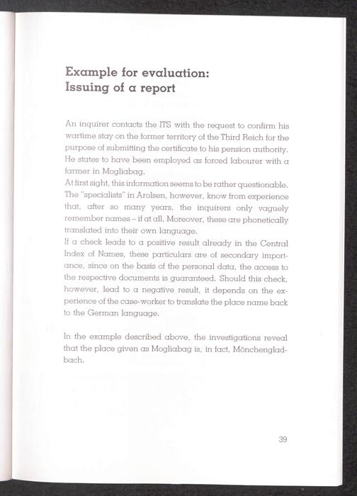 International Tracing Service Example for evaluation: Issuing of a report