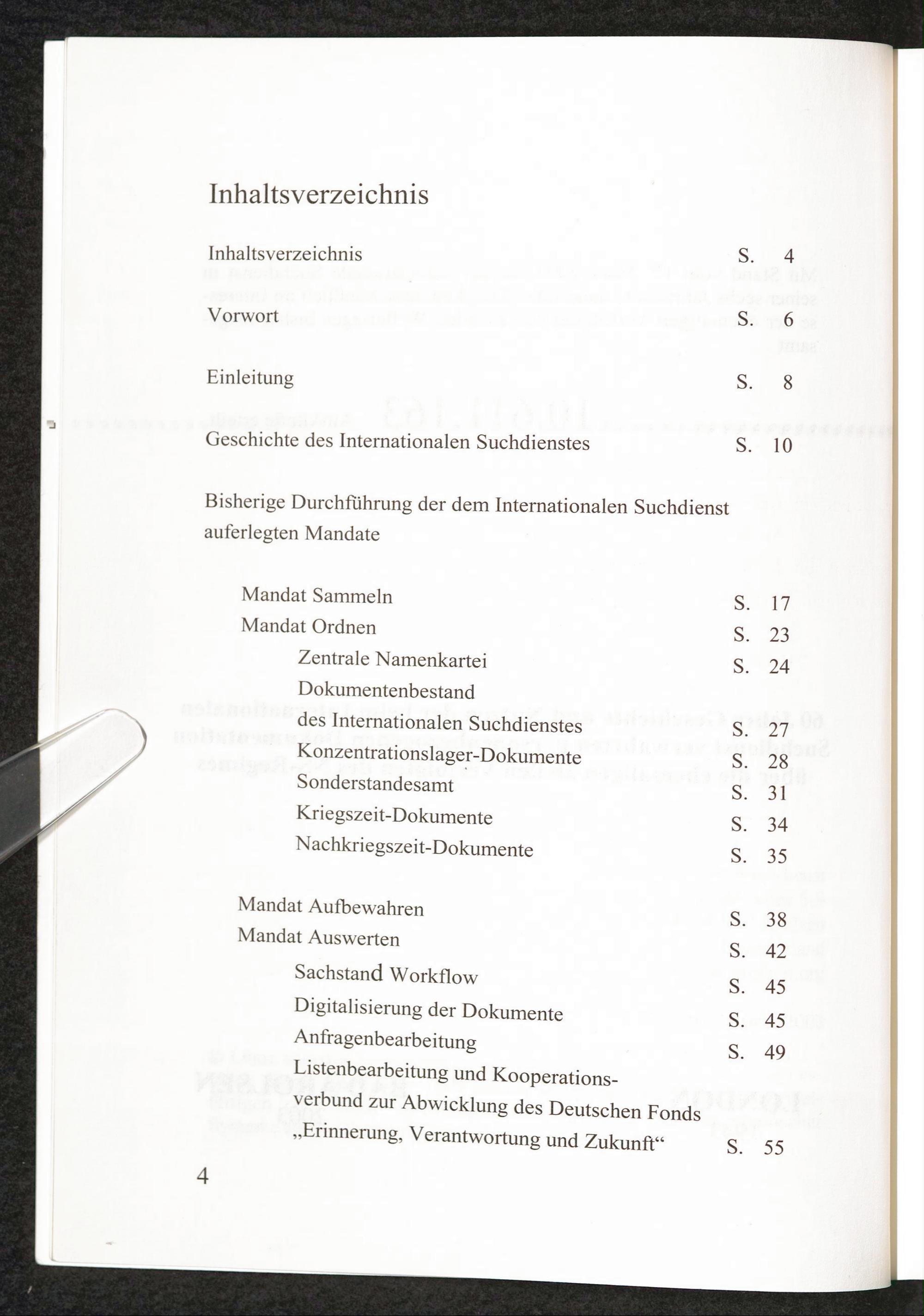 60 Jahre Geschichte und Nutzen der beim Internationalen Suchdienst verwahrten personenbezogenen... Inhaltsverzeichnis
