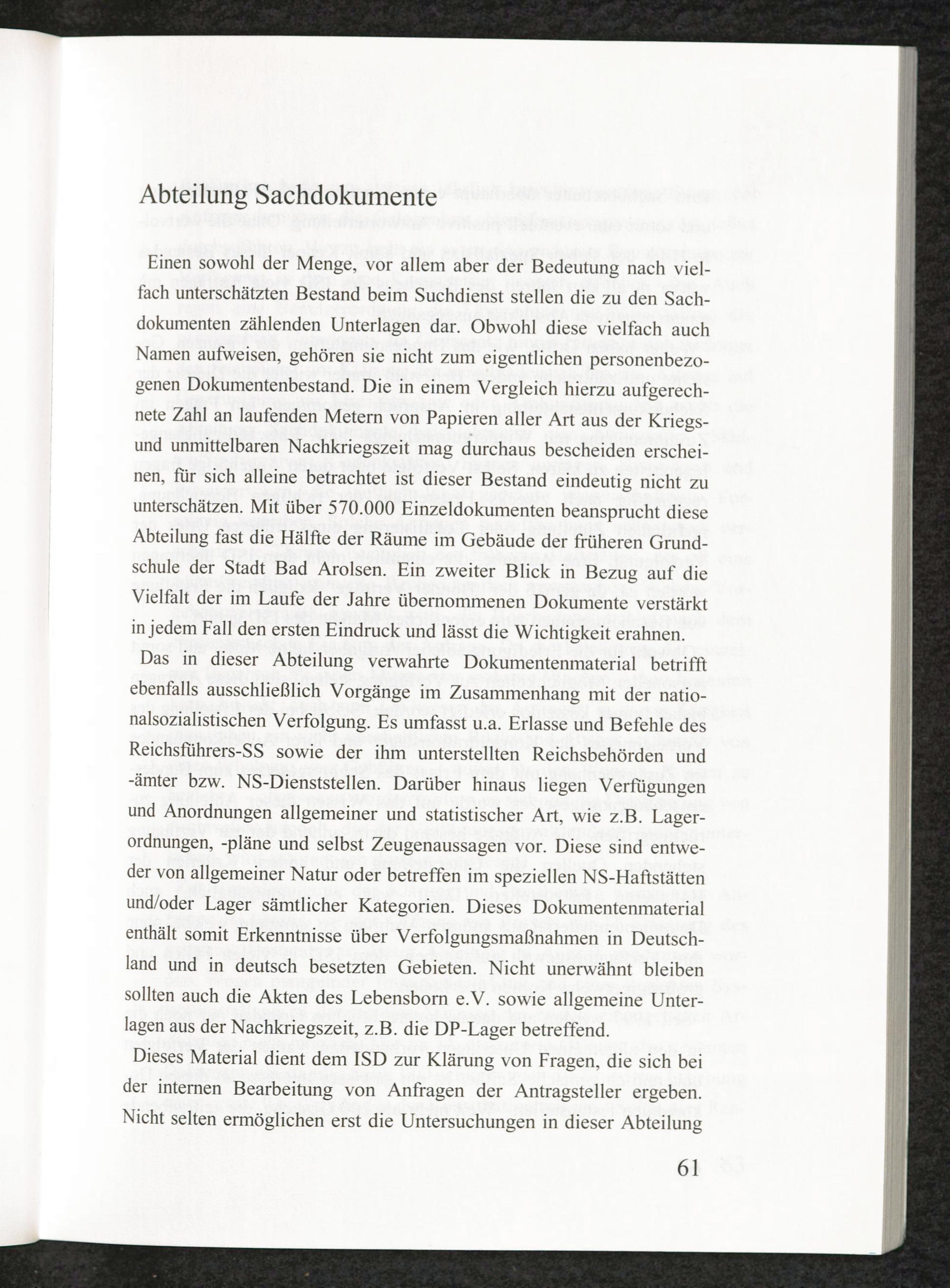 60 Jahre Geschichte und Nutzen der beim Internationalen Suchdienst verwahrten personenbezogenen... Abteilung Sachdokumente