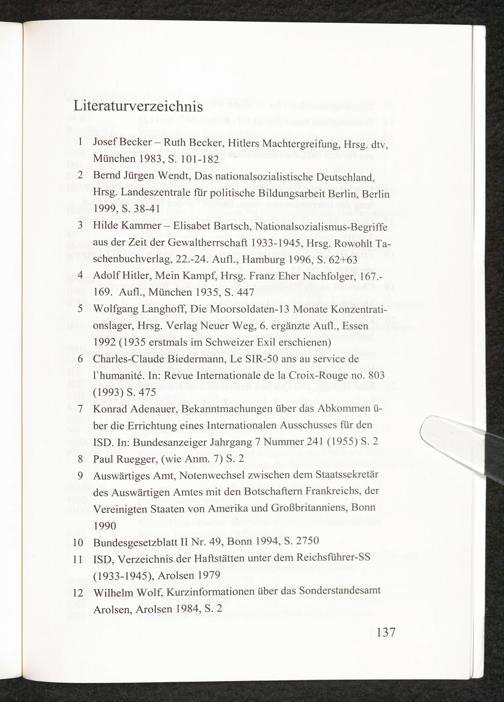 60 Jahre Geschichte und Nutzen der beim Internationalen Suchdienst verwahrten personenbezogenen... Literaturverzeichnis