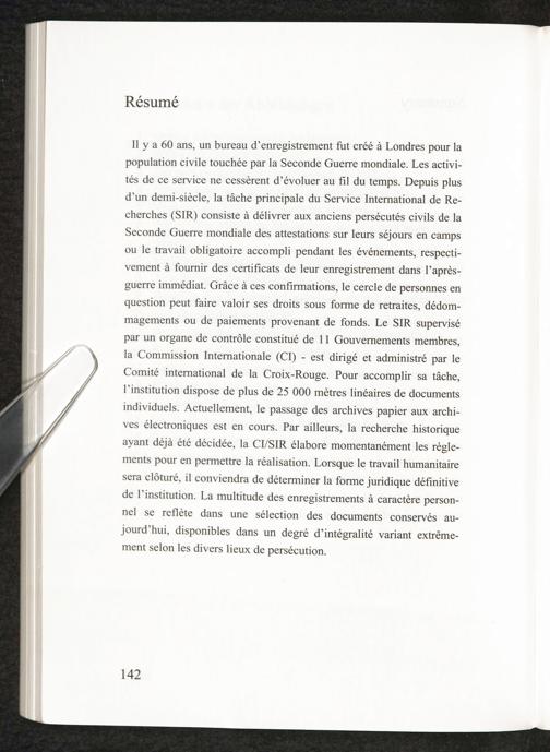 60 Jahre Geschichte und Nutzen der beim Internationalen Suchdienst verwahrten personenbezogenen... Résumé