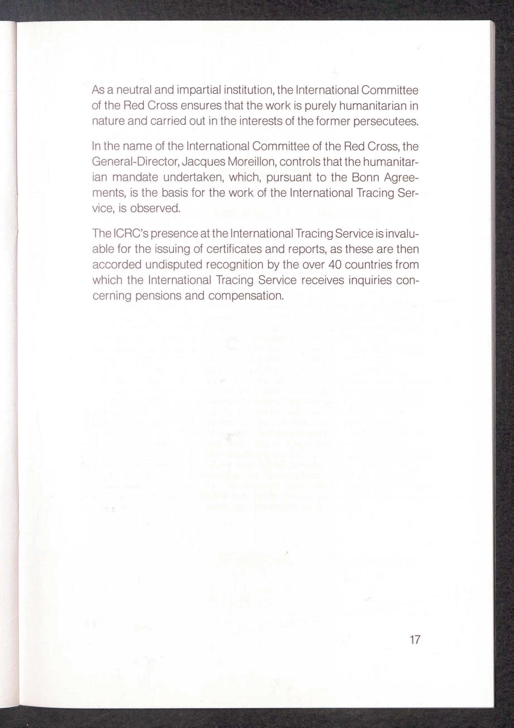 PDF 16 The International Committee of the Red Cross, responsible for the direction and administration of the International Tracing Service