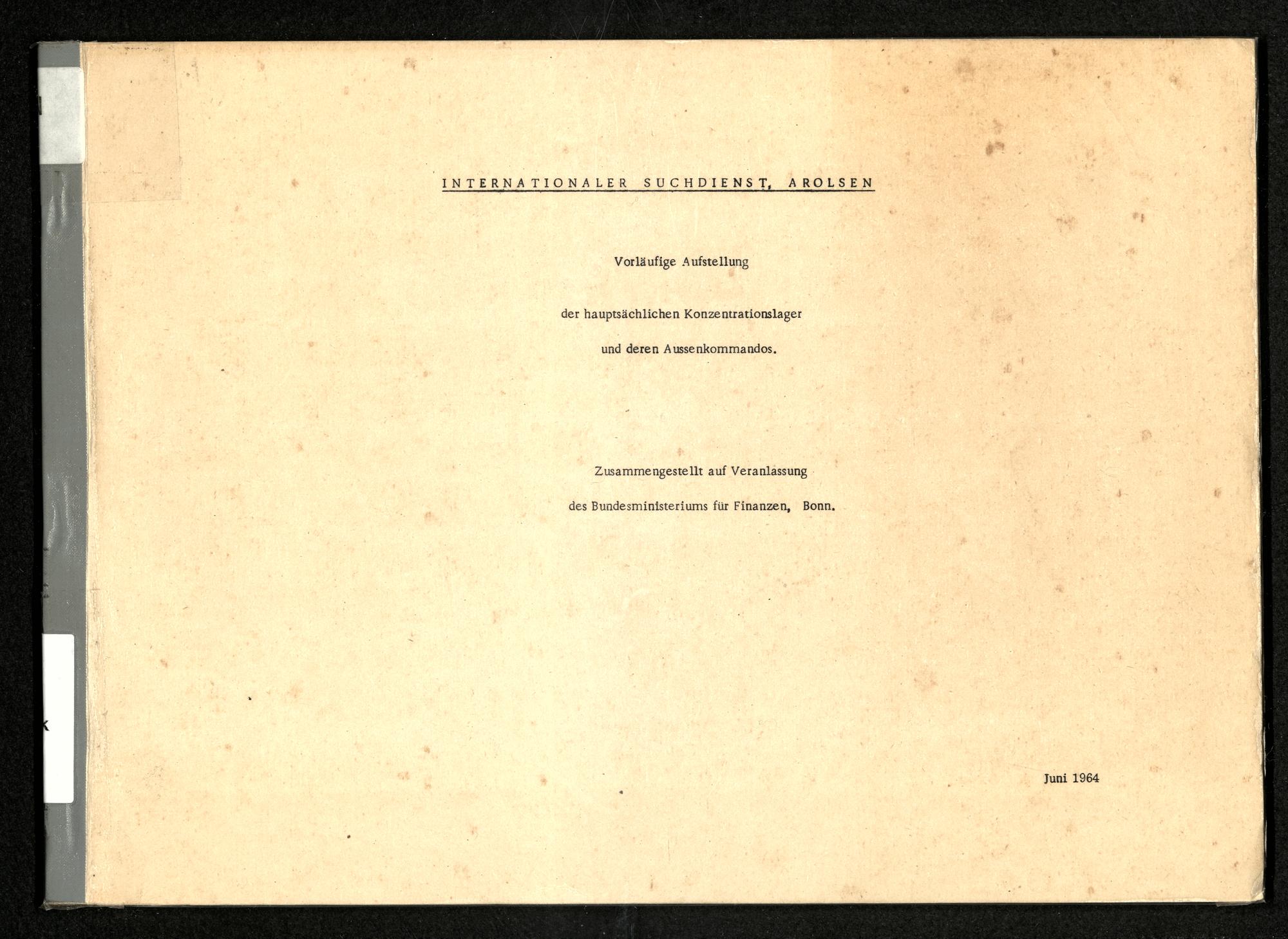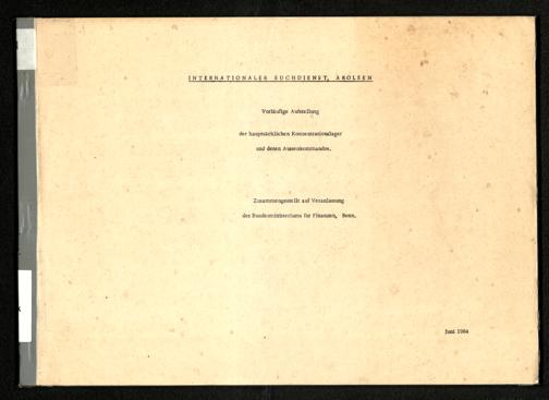 Vorläufige Aufstellung der hauptsächlichen Konzentrationslager und deren Aussenkommandos / International Tracing Service