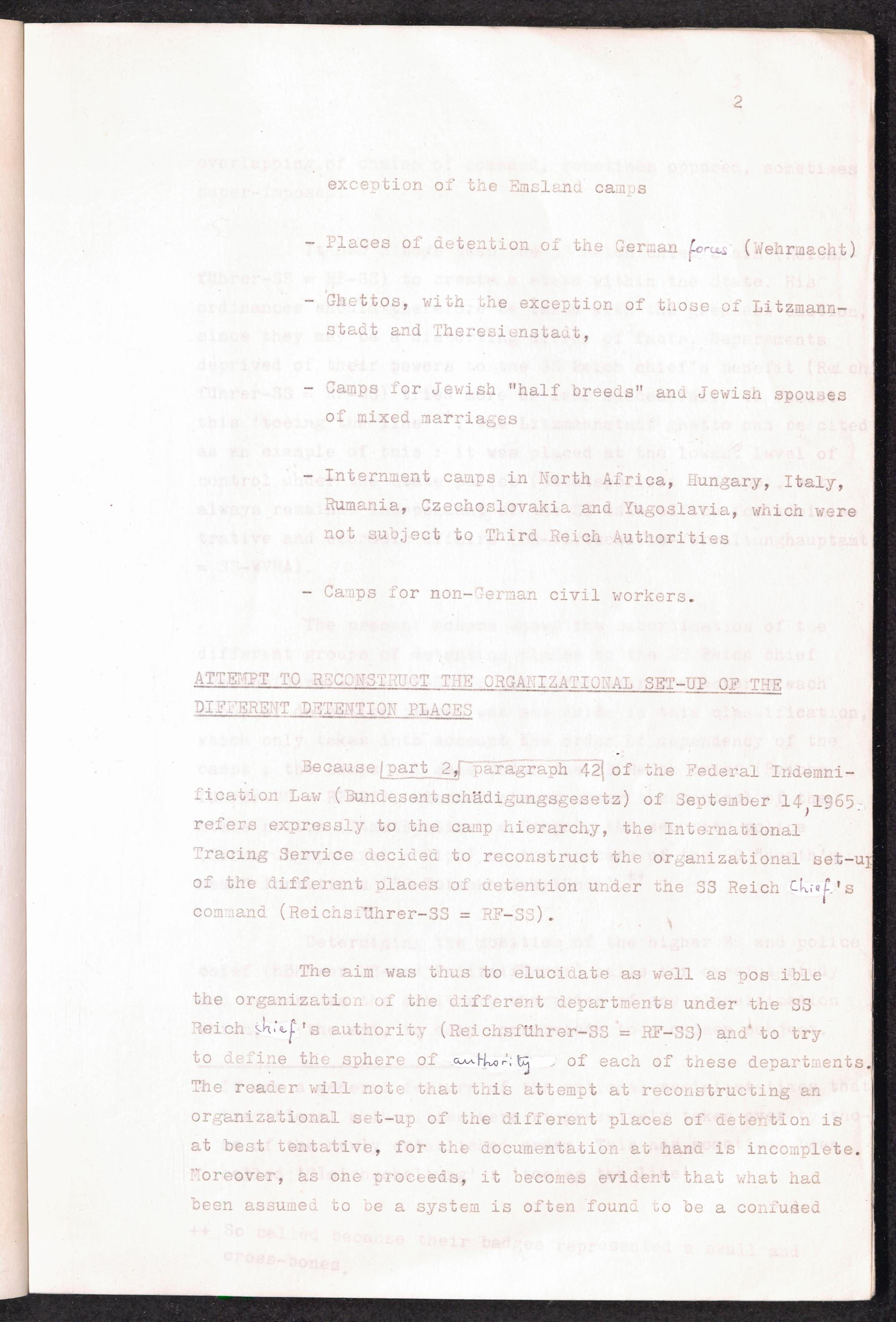 Provisional Catalogue of Concentration Camps and their Outlying Commandos as well as Other Detention Places under the Command of the RF-SS in Germany and German Occupied Territories (1939-1945) : Introduction / International Tracing Service (ITS)