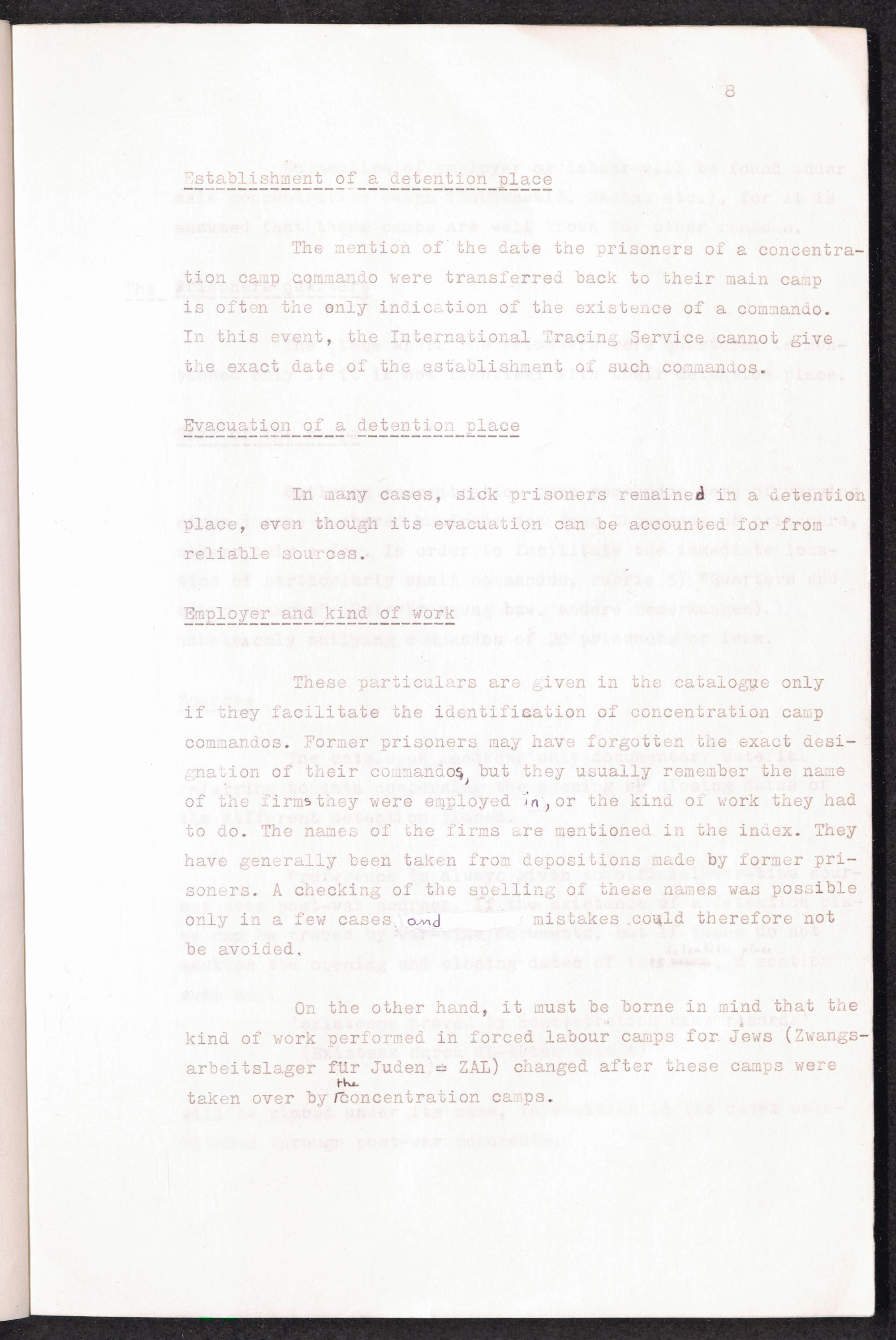 Provisional Catalogue of Concentration Camps and their Outlying Commandos as well as Other Detention Places under the Command of the RF-SS in Germany and German Occupied Territories (1939-1945) : Introduction / International Tracing Service (ITS)