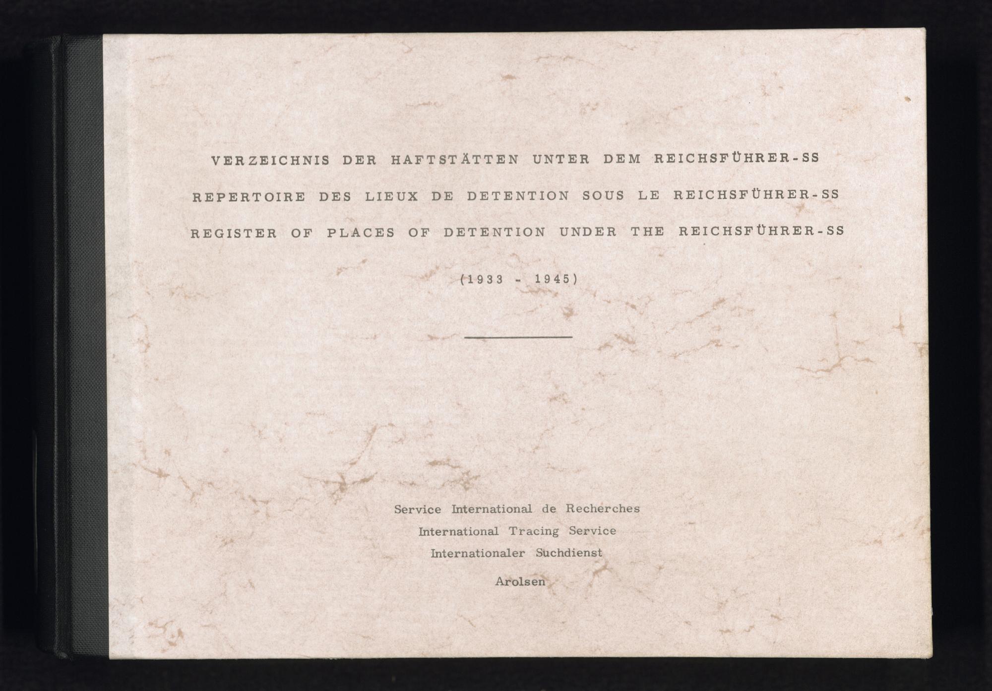 Verzeichnis der Haftstätten unter dem Reichsführer-SS (1933-1945) : Konzentrationslager und deren Außenkommandos sowie andere Haftstätten unter dem Reichsführer-SS in Deutschland und deutsch besetzten Gebieten / International Tracing Service (ITS)Repertoire Des Lieux De Detention Sous Le Reichsführer-SS : Konzentrationslager und deren Außenkommandos sowie andere Haftstätten unter dem Reichsführer-SS in Deutschland und deutsch besetzten Gebieten / International Tracing Service (ITS)Register Of Places Of Detention Under The Reichsführer-SS : Konzentrationslager und deren Außenkommandos sowie andere Haftstätten unter dem Reichsführer-SS in Deutschland und deutsch besetzten Gebieten / International Tracing Service (ITS)