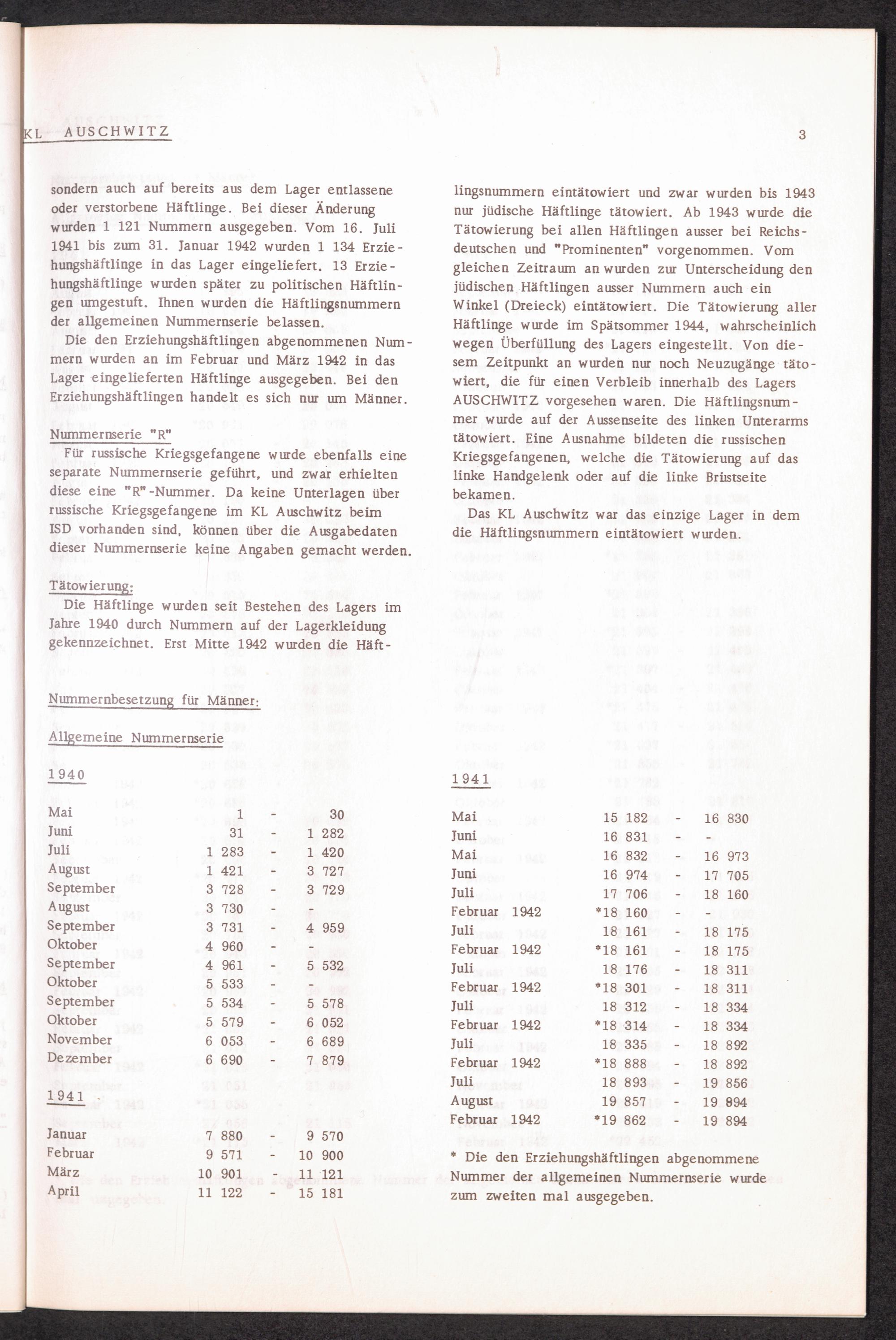 Häftlingsnummernzuteilung in Konzentrationslagern KL AUSCHWITZ