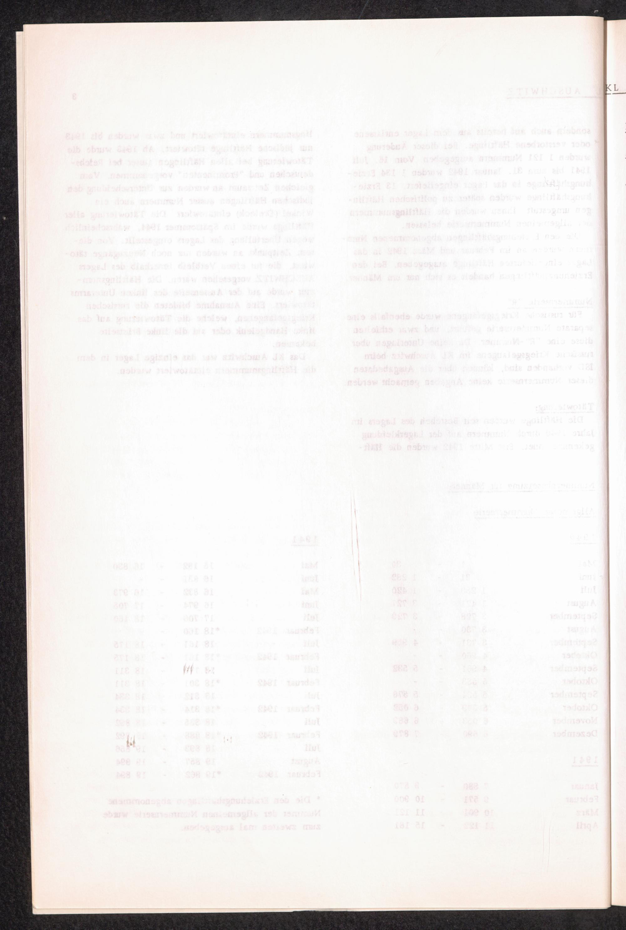 Häftlingsnummernzuteilung in Konzentrationslagern KL AUSCHWITZ