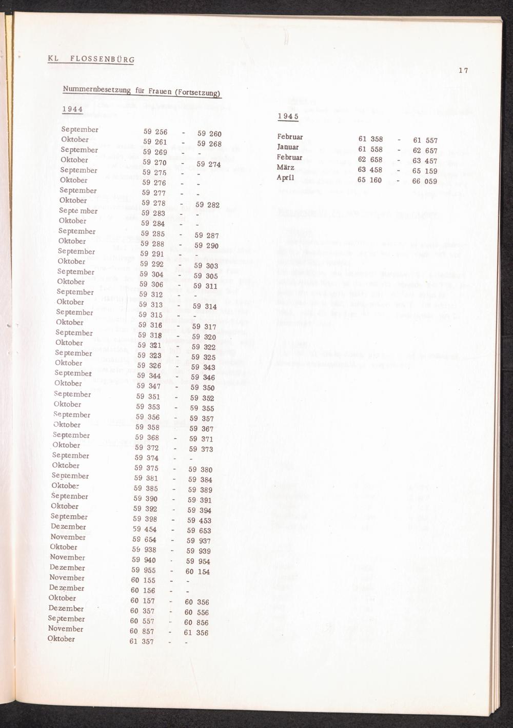 Häftlingsnummernzuteilung in Konzentrationslagern KL FLOSSENBÜRG