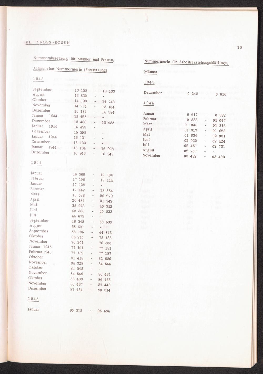 Häftlingsnummernzuteilung in Konzentrationslagern KL GROSS-ROSEN