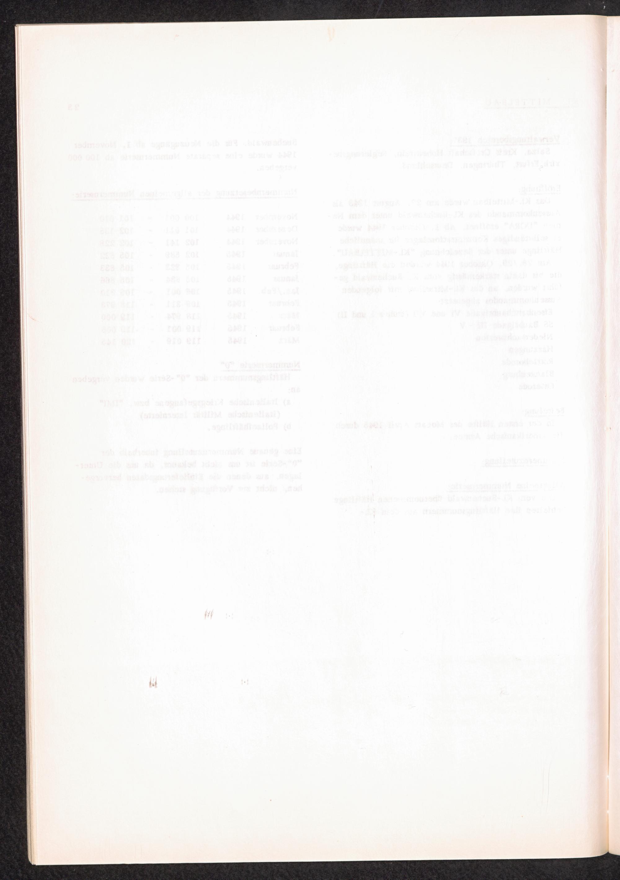 Häftlingsnummernzuteilung in Konzentrationslagern KL MITTELBAU