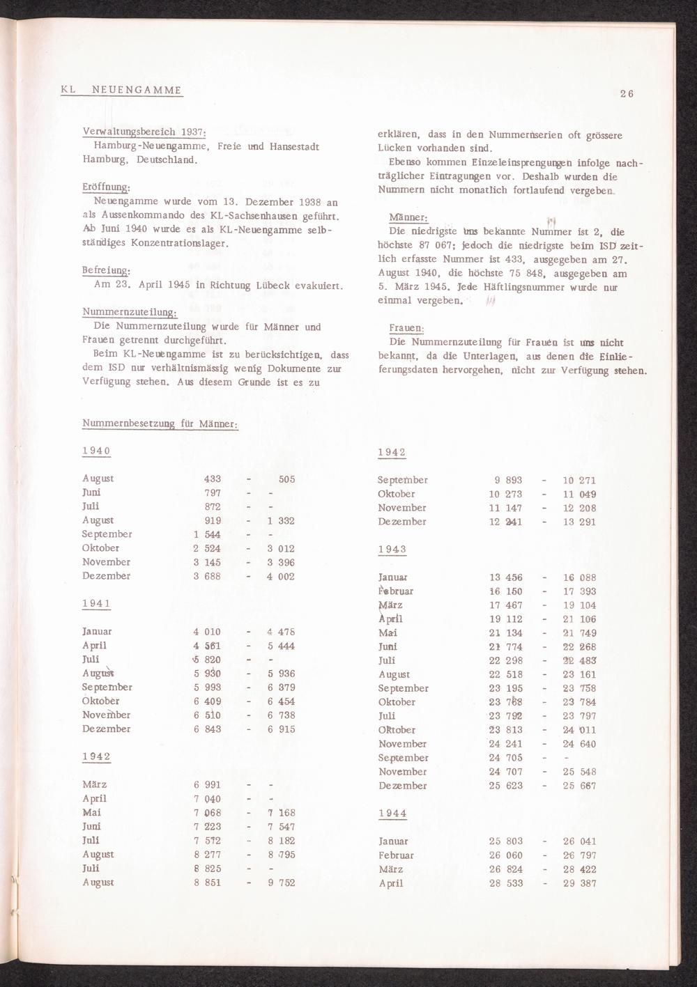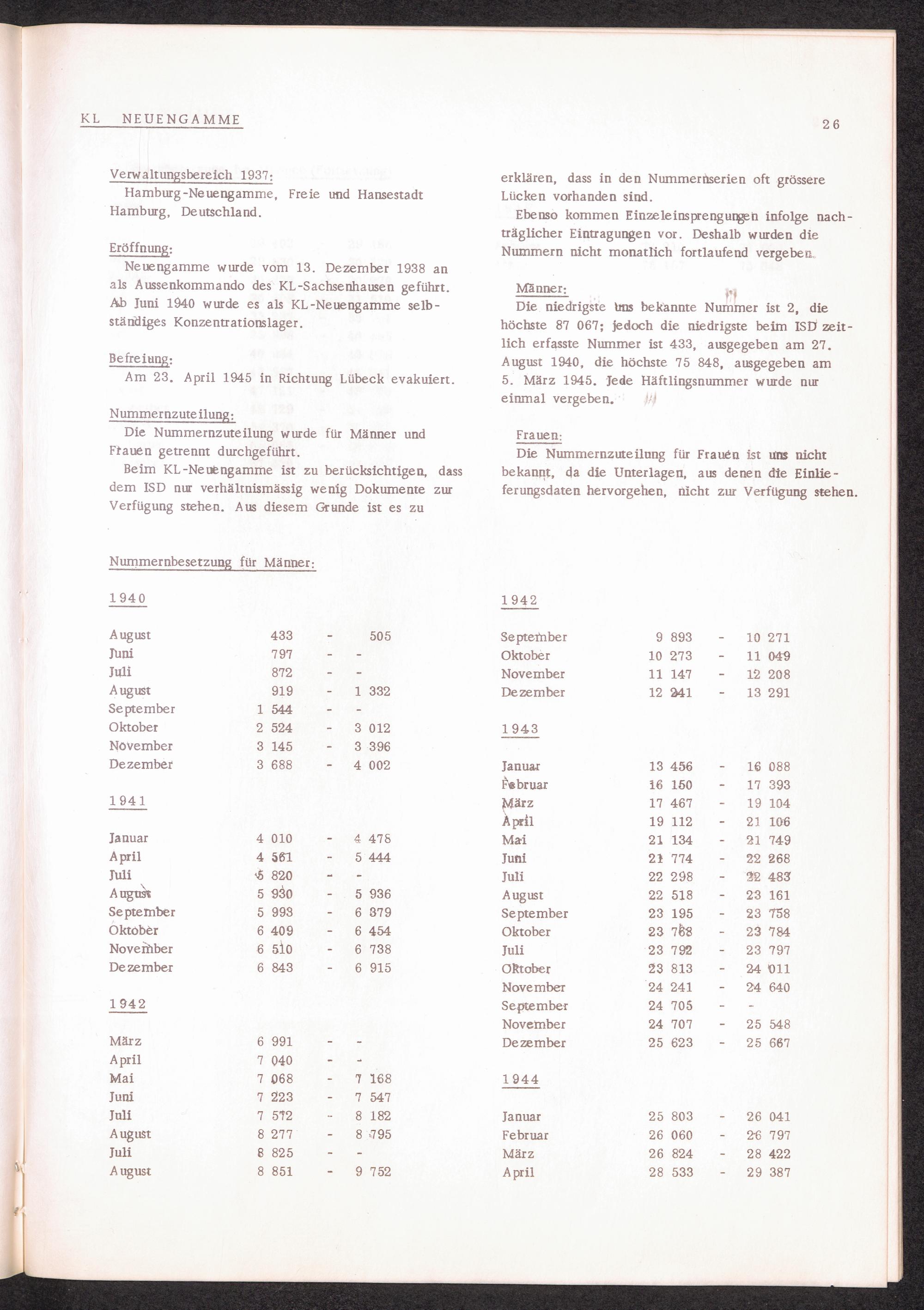 Häftlingsnummernzuteilung in Konzentrationslagern KL NEUENGAMME