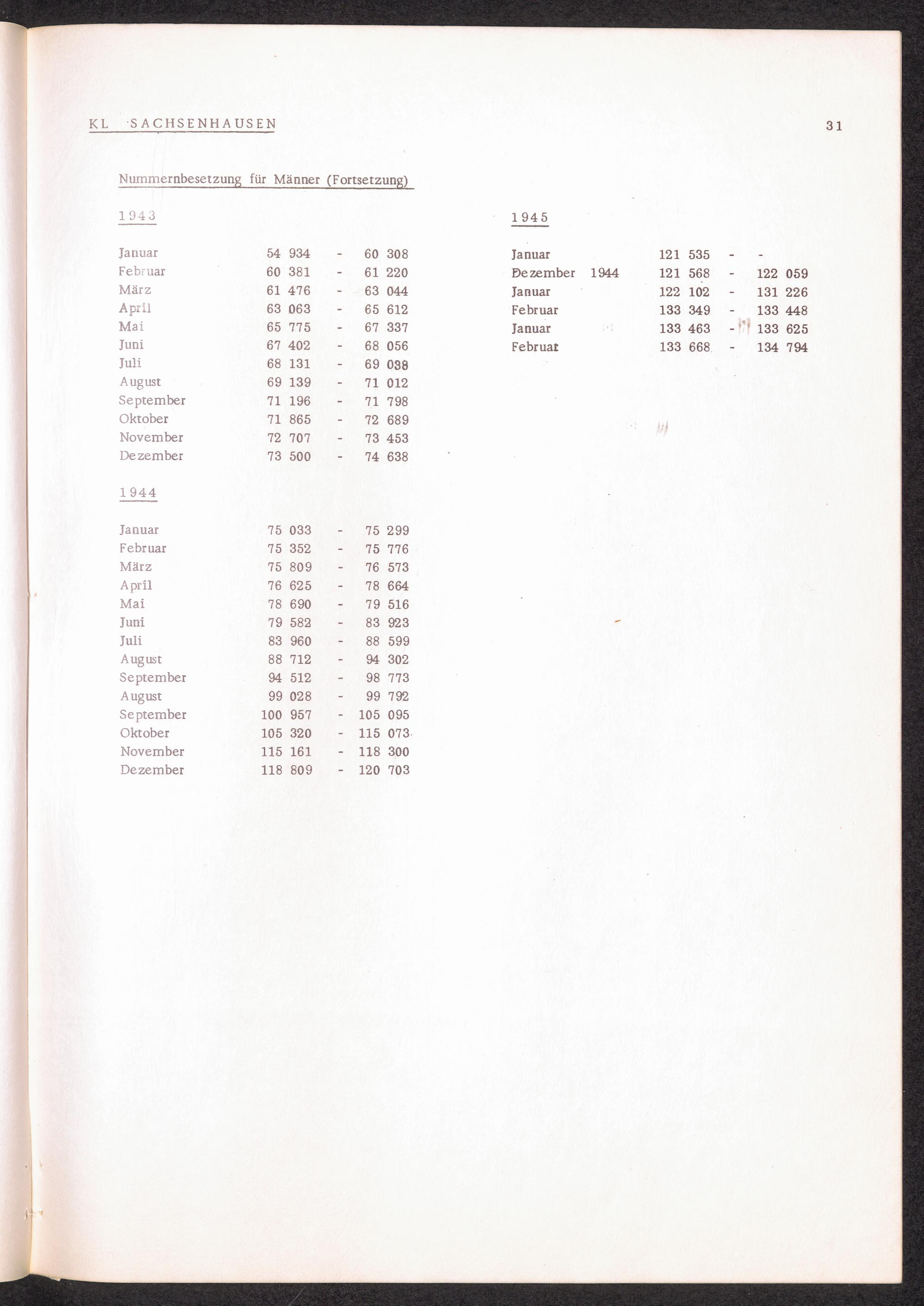 Häftlingsnummernzuteilung in Konzentrationslagern KL SACHSENHAUSEN