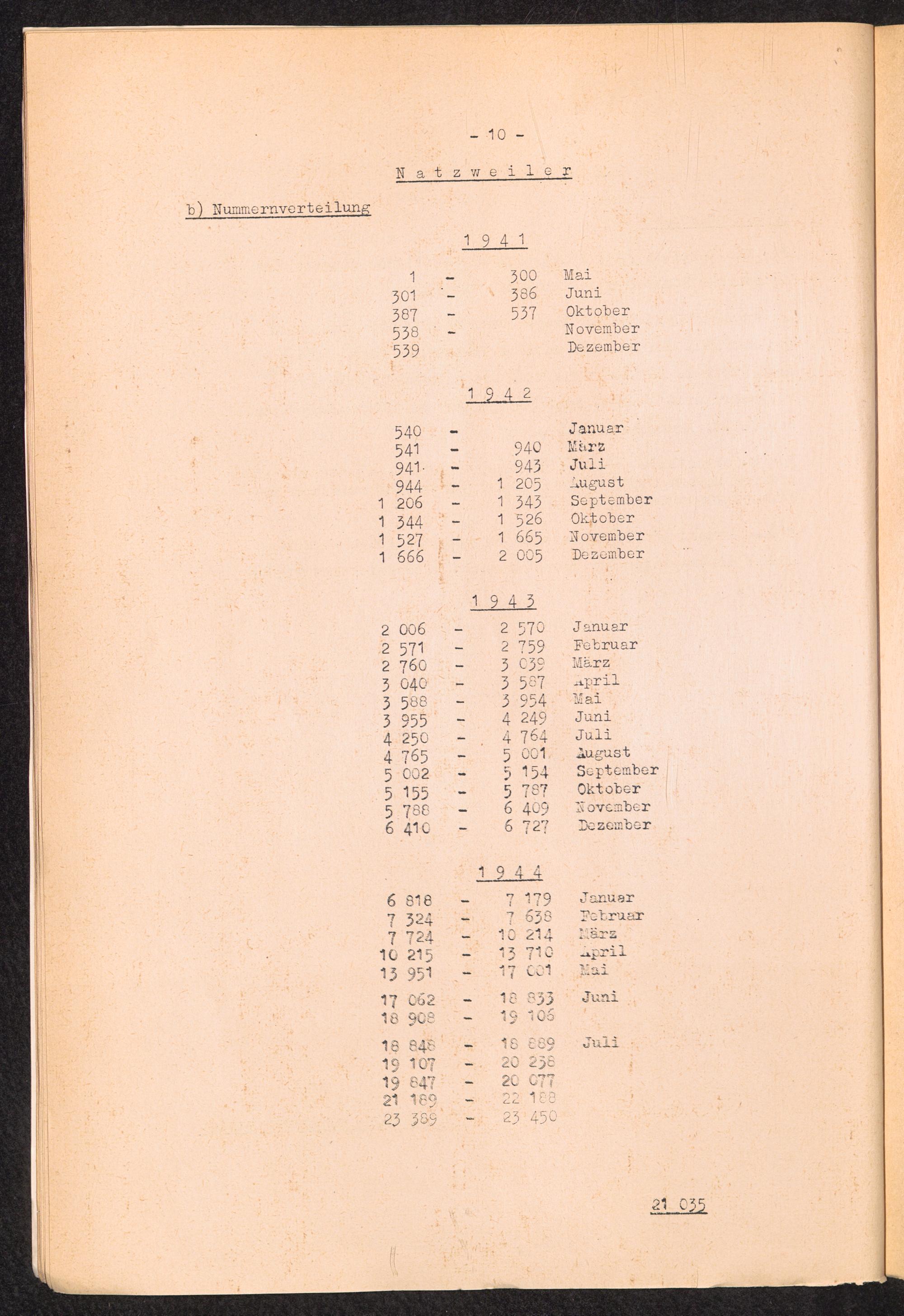 Häftlingsnummernverteilung in Konzentrationslagern Natzweiler
