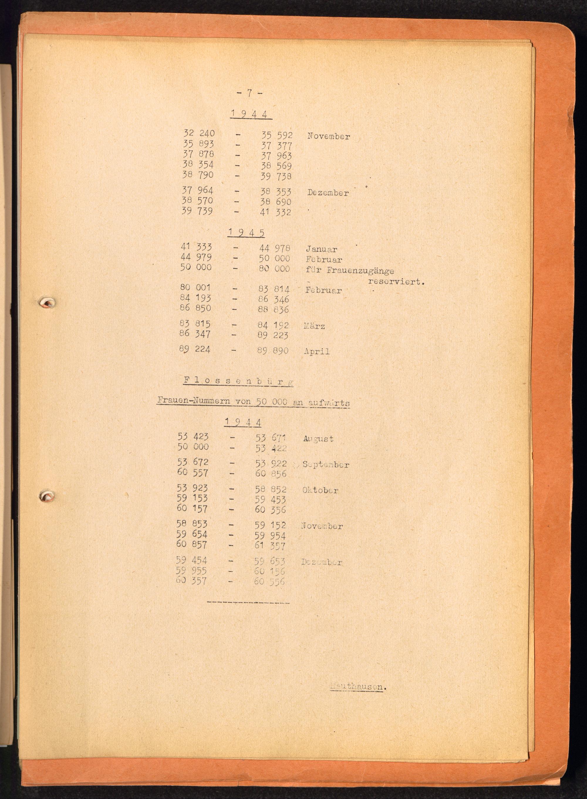 Häftlingsnummernzuteilungen / International Tracing Service (ITS)Transport-Übersichten (nach KL Au) / International Tracing Service (ITS)Häftlingsnummernverteilung in Konzentrationslagern / International Tracing Service (ITS)
