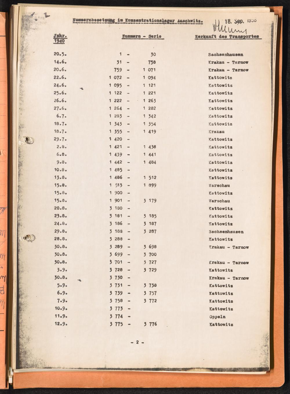Häftlingsnummernzuteilungen Auschwitz