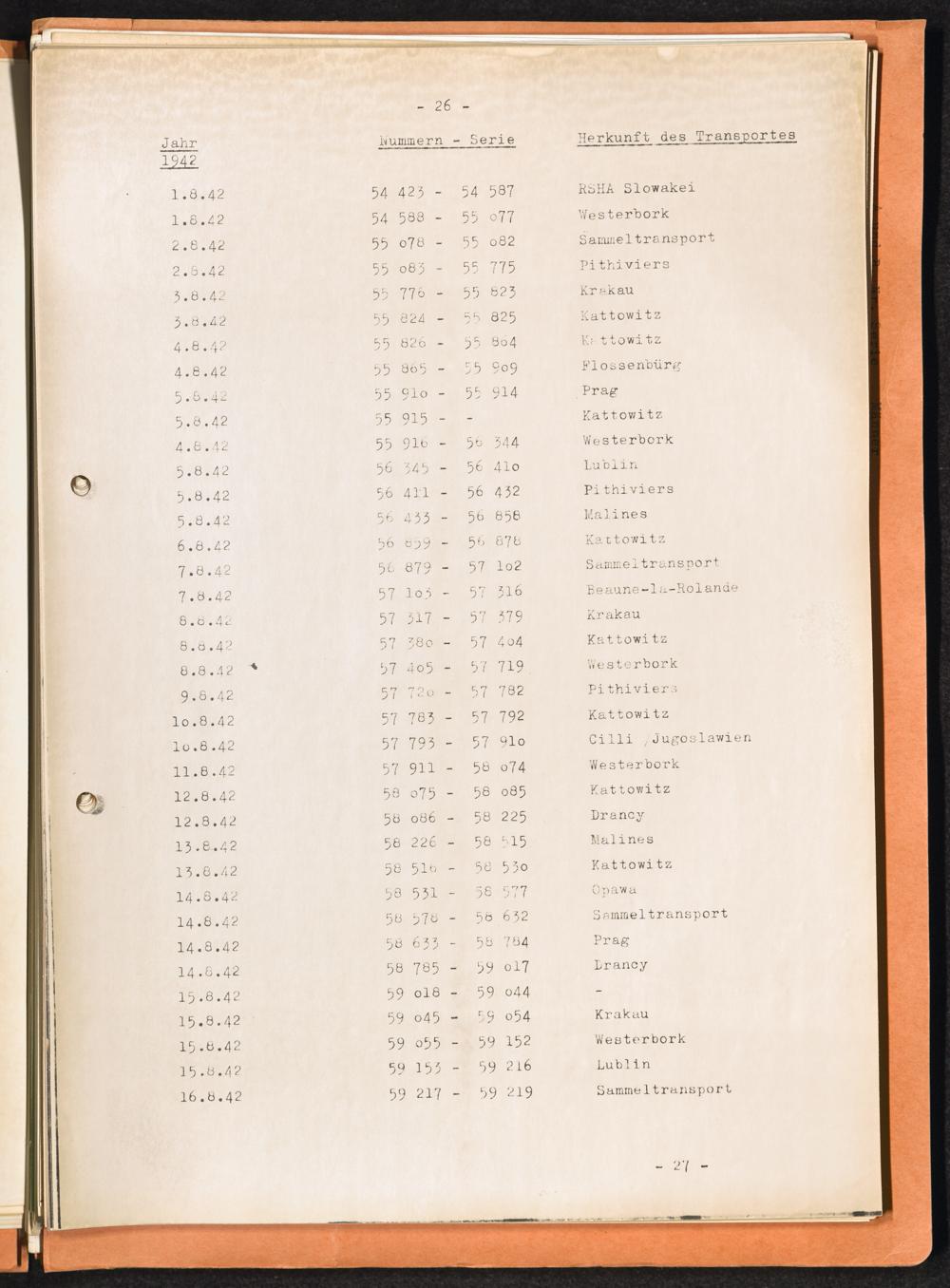 Häftlingsnummernzuteilungen / International Tracing Service (ITS)Transport-Übersichten (nach KL Au) / International Tracing Service (ITS)Häftlingsnummernverteilung in Konzentrationslagern / International Tracing Service (ITS)