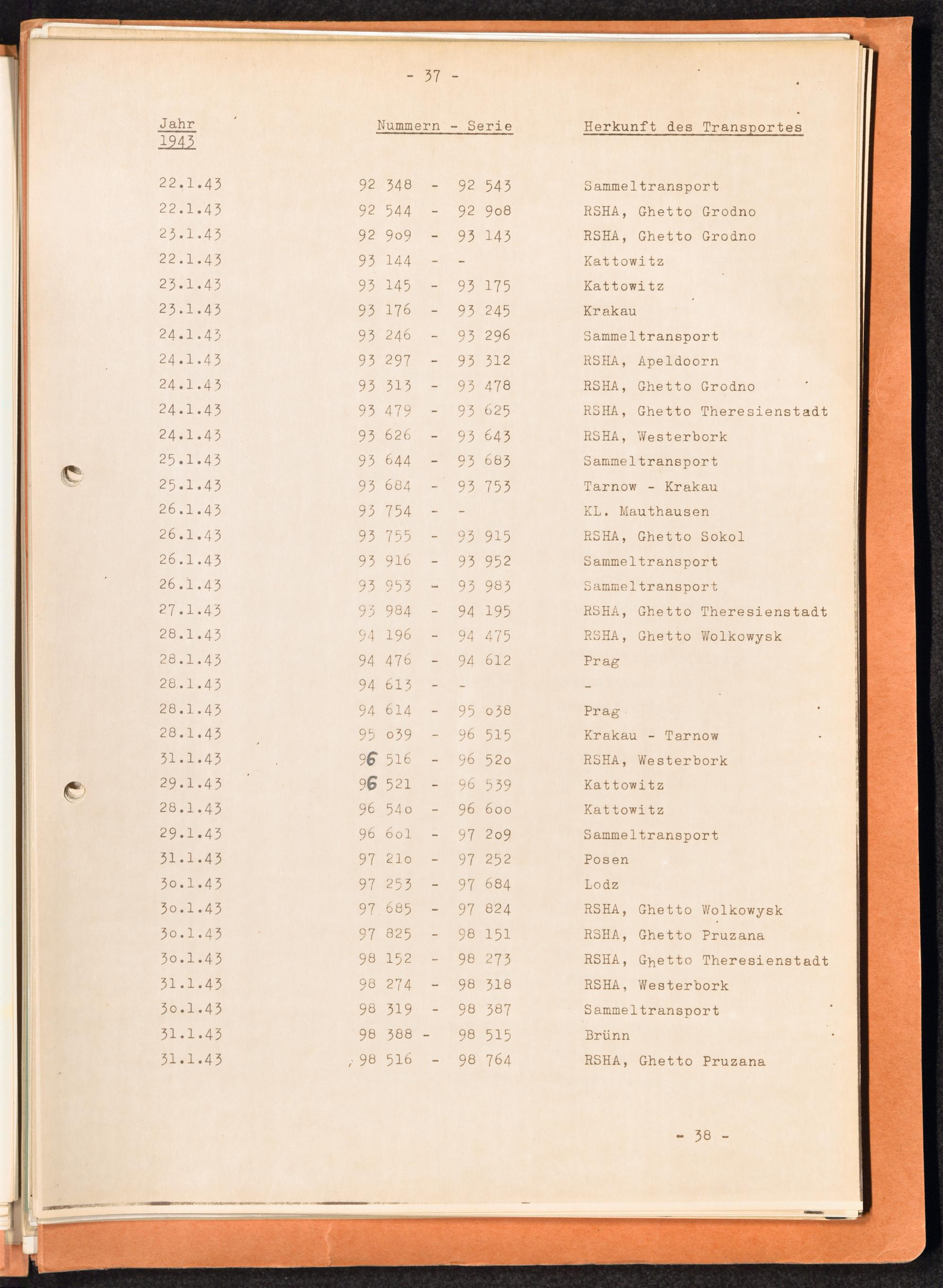 Häftlingsnummernzuteilungen / International Tracing Service (ITS)Transport-Übersichten (nach KL Au) / International Tracing Service (ITS)Häftlingsnummernverteilung in Konzentrationslagern / International Tracing Service (ITS)