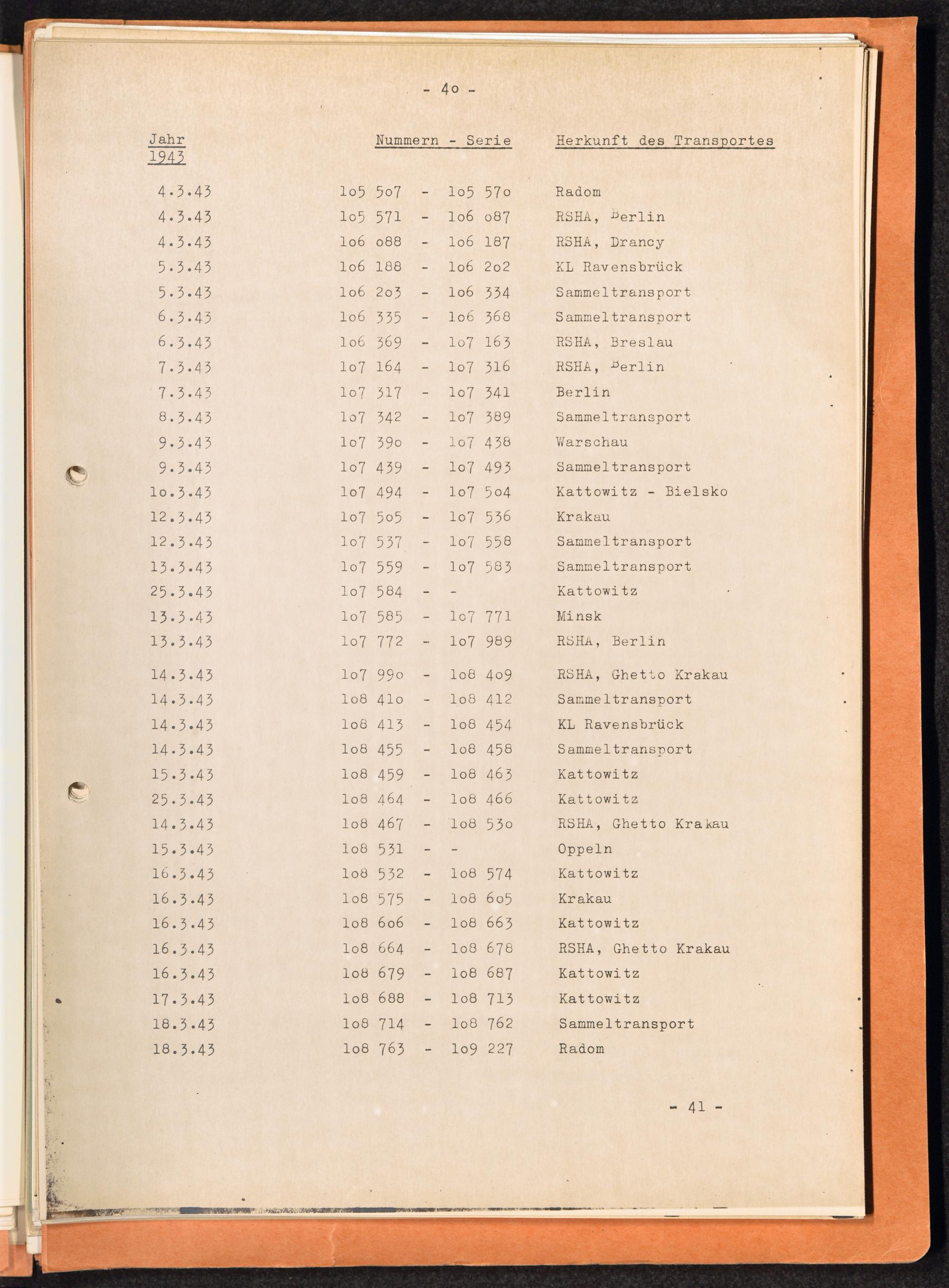 Häftlingsnummernzuteilungen / International Tracing Service (ITS)Transport-Übersichten (nach KL Au) / International Tracing Service (ITS)Häftlingsnummernverteilung in Konzentrationslagern / International Tracing Service (ITS)
