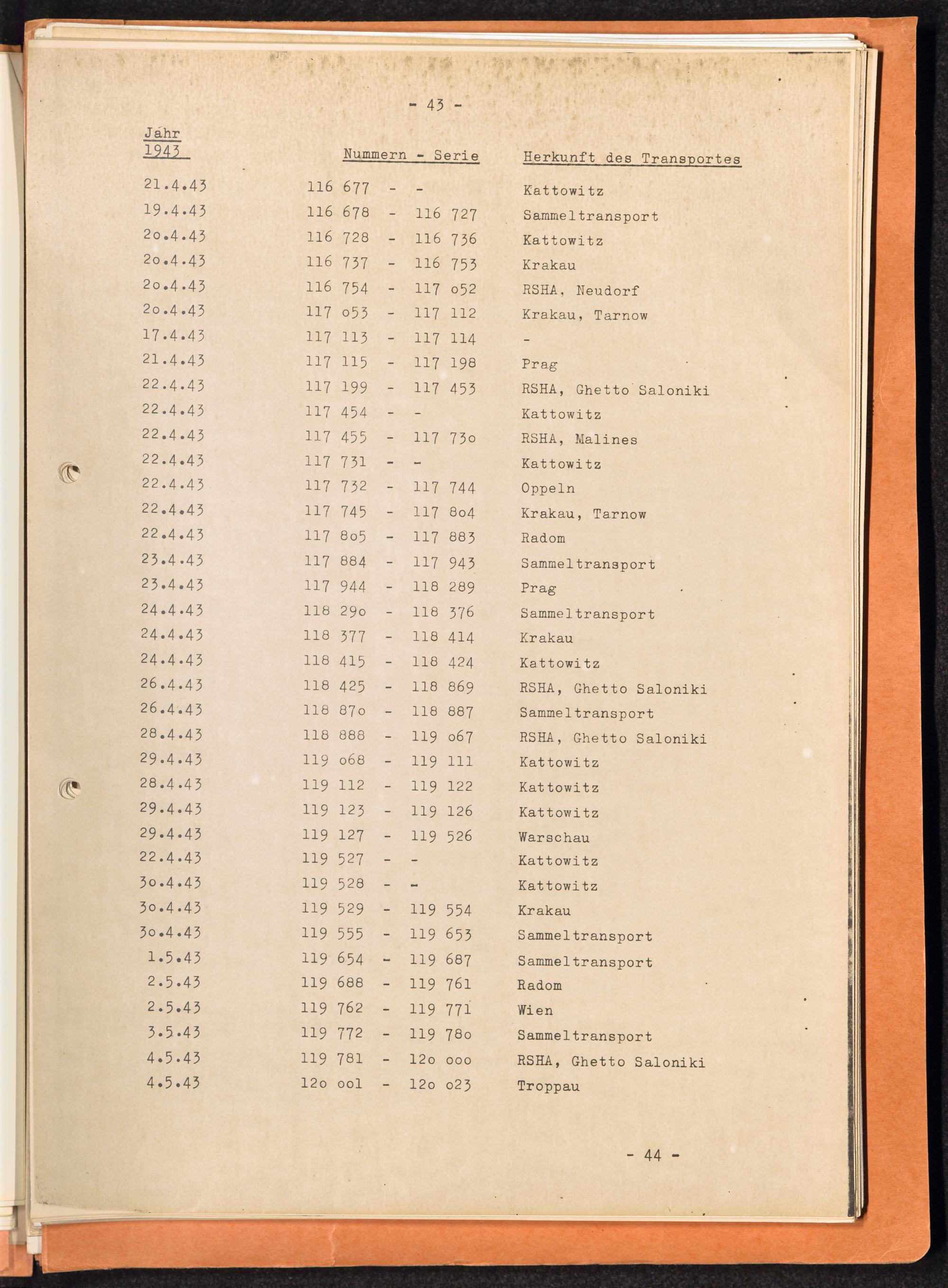 Häftlingsnummernzuteilungen / International Tracing Service (ITS)Transport-Übersichten (nach KL Au) / International Tracing Service (ITS)Häftlingsnummernverteilung in Konzentrationslagern / International Tracing Service (ITS)