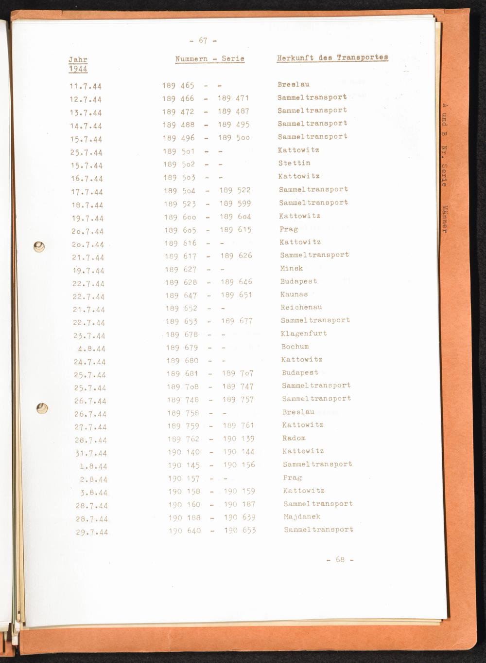 Häftlingsnummernzuteilungen / International Tracing Service (ITS)Transport-Übersichten (nach KL Au) / International Tracing Service (ITS)Häftlingsnummernverteilung in Konzentrationslagern / International Tracing Service (ITS)