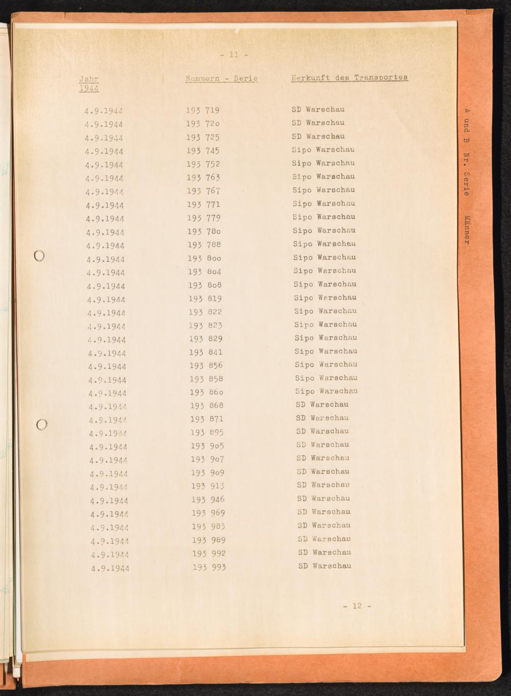 Häftlingsnummernzuteilungen / International Tracing Service (ITS)Transport-Übersichten (nach KL Au) / International Tracing Service (ITS)Häftlingsnummernverteilung in Konzentrationslagern / International Tracing Service (ITS)