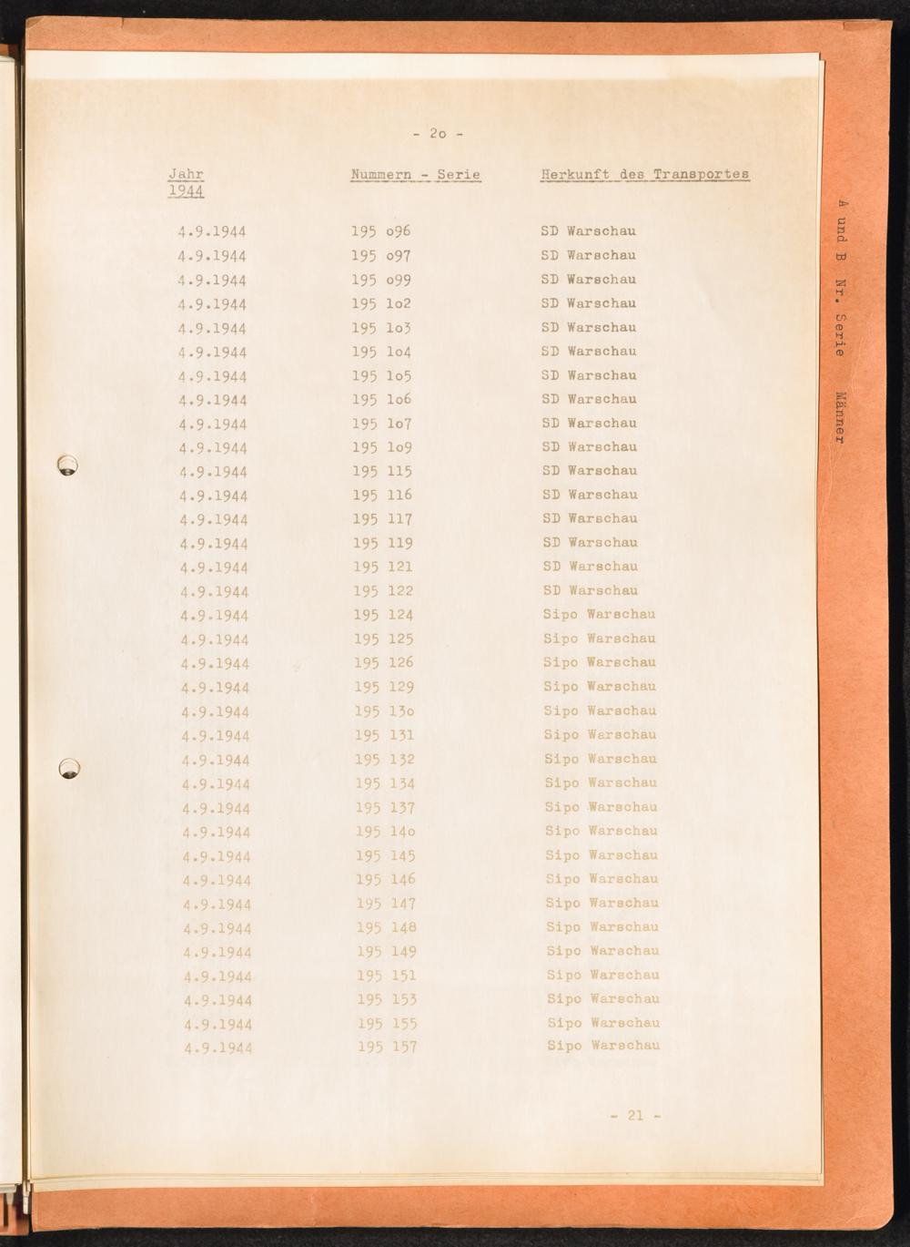 Häftlingsnummernzuteilungen / International Tracing Service (ITS)Transport-Übersichten (nach KL Au) / International Tracing Service (ITS)Häftlingsnummernverteilung in Konzentrationslagern / International Tracing Service (ITS)