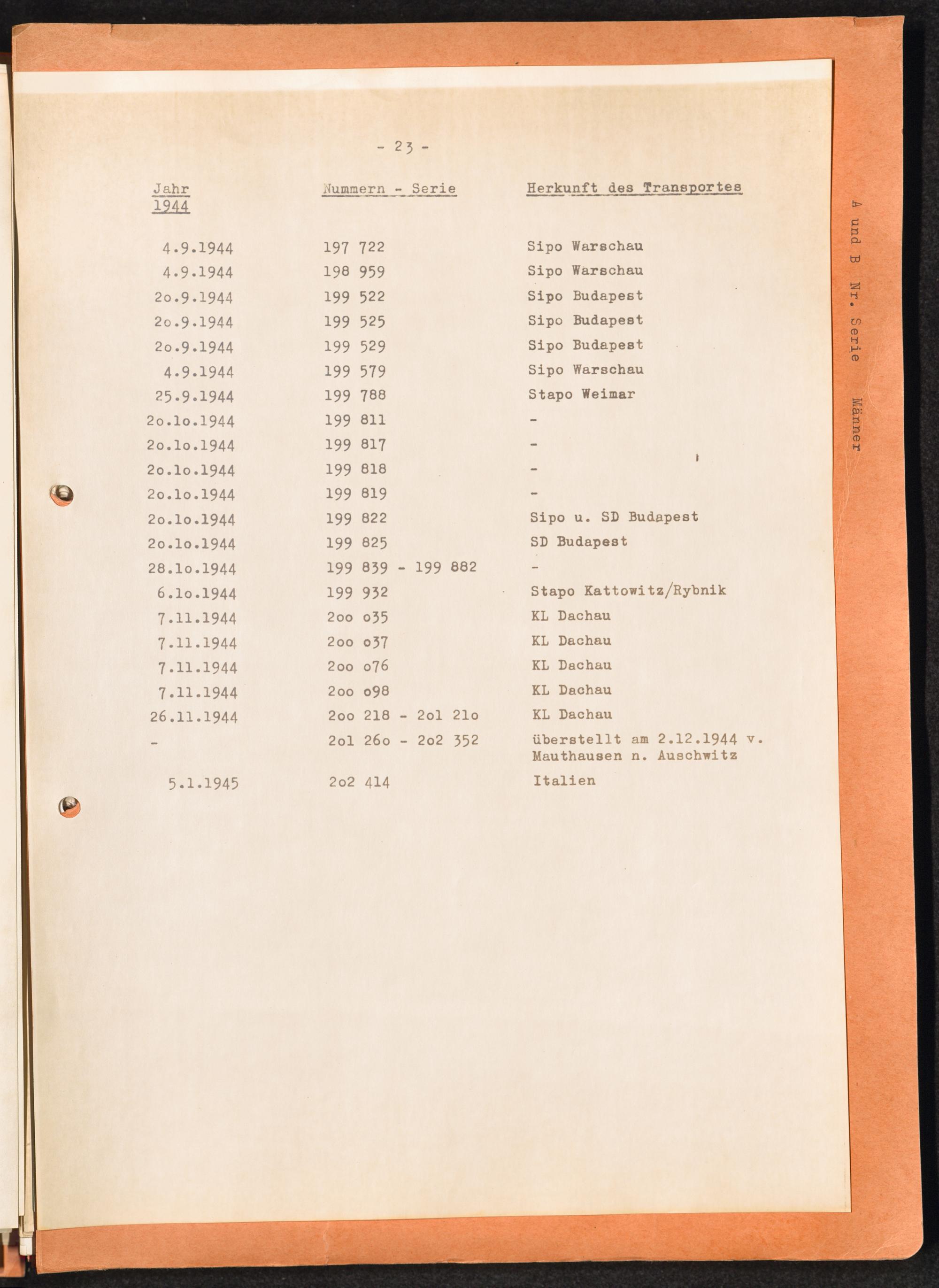 Häftlingsnummernzuteilungen / International Tracing Service (ITS)Transport-Übersichten (nach KL Au) / International Tracing Service (ITS)Häftlingsnummernverteilung in Konzentrationslagern / International Tracing Service (ITS)