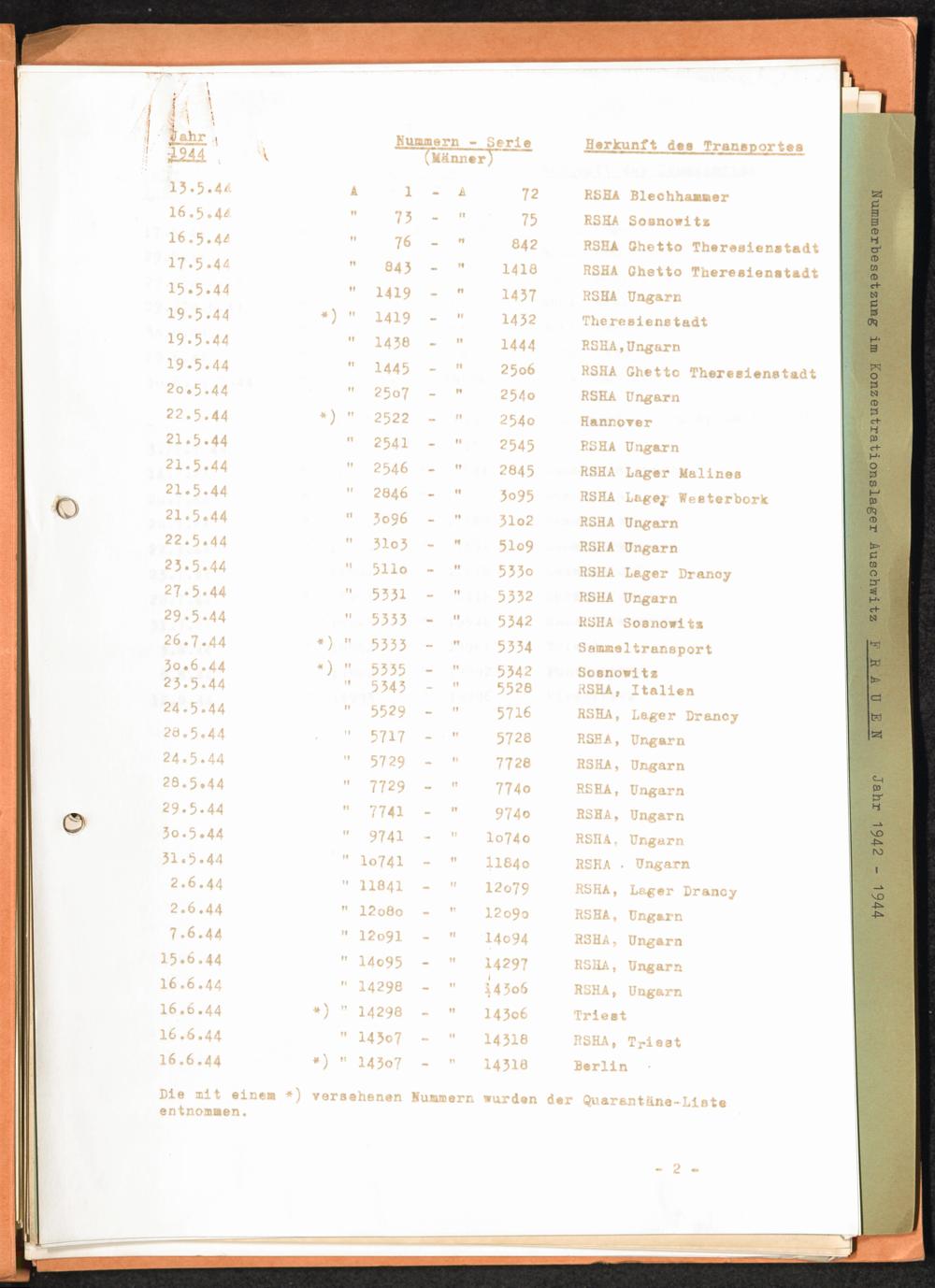 Häftlingsnummernzuteilungen / International Tracing Service (ITS)Transport-Übersichten (nach KL Au) / International Tracing Service (ITS)Häftlingsnummernverteilung in Konzentrationslagern / International Tracing Service (ITS)