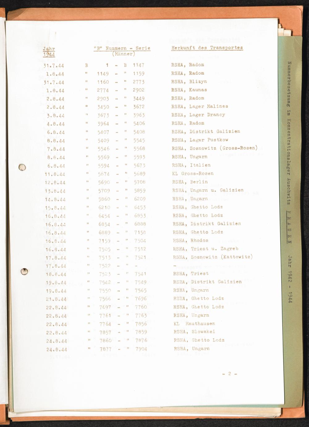 Häftlingsnummernzuteilungen / International Tracing Service (ITS)Transport-Übersichten (nach KL Au) / International Tracing Service (ITS)Häftlingsnummernverteilung in Konzentrationslagern / International Tracing Service (ITS)