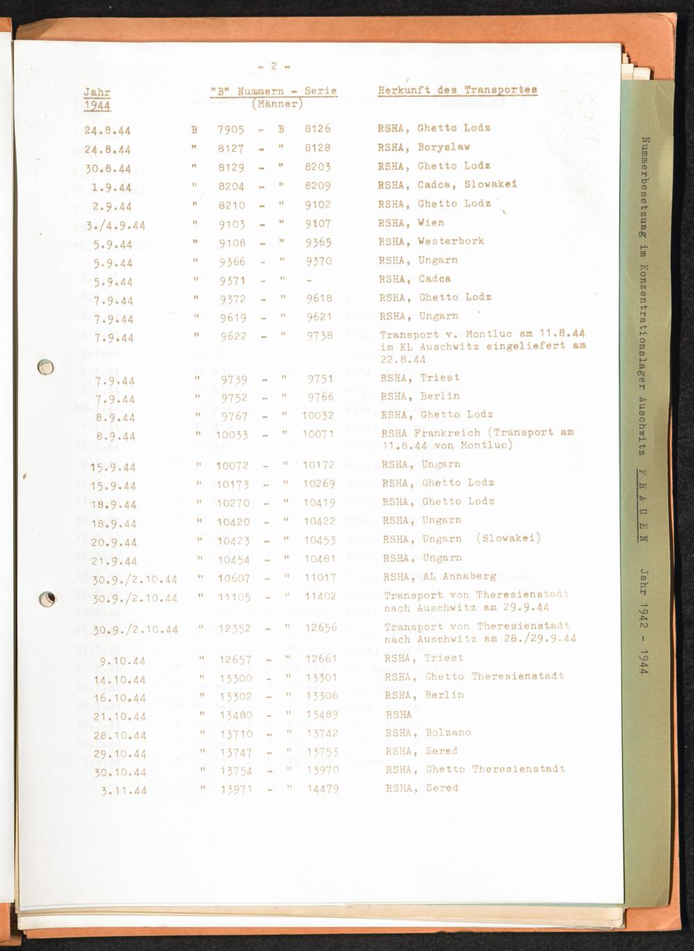 Häftlingsnummernzuteilungen / International Tracing Service (ITS)Transport-Übersichten (nach KL Au) / International Tracing Service (ITS)Häftlingsnummernverteilung in Konzentrationslagern / International Tracing Service (ITS)
