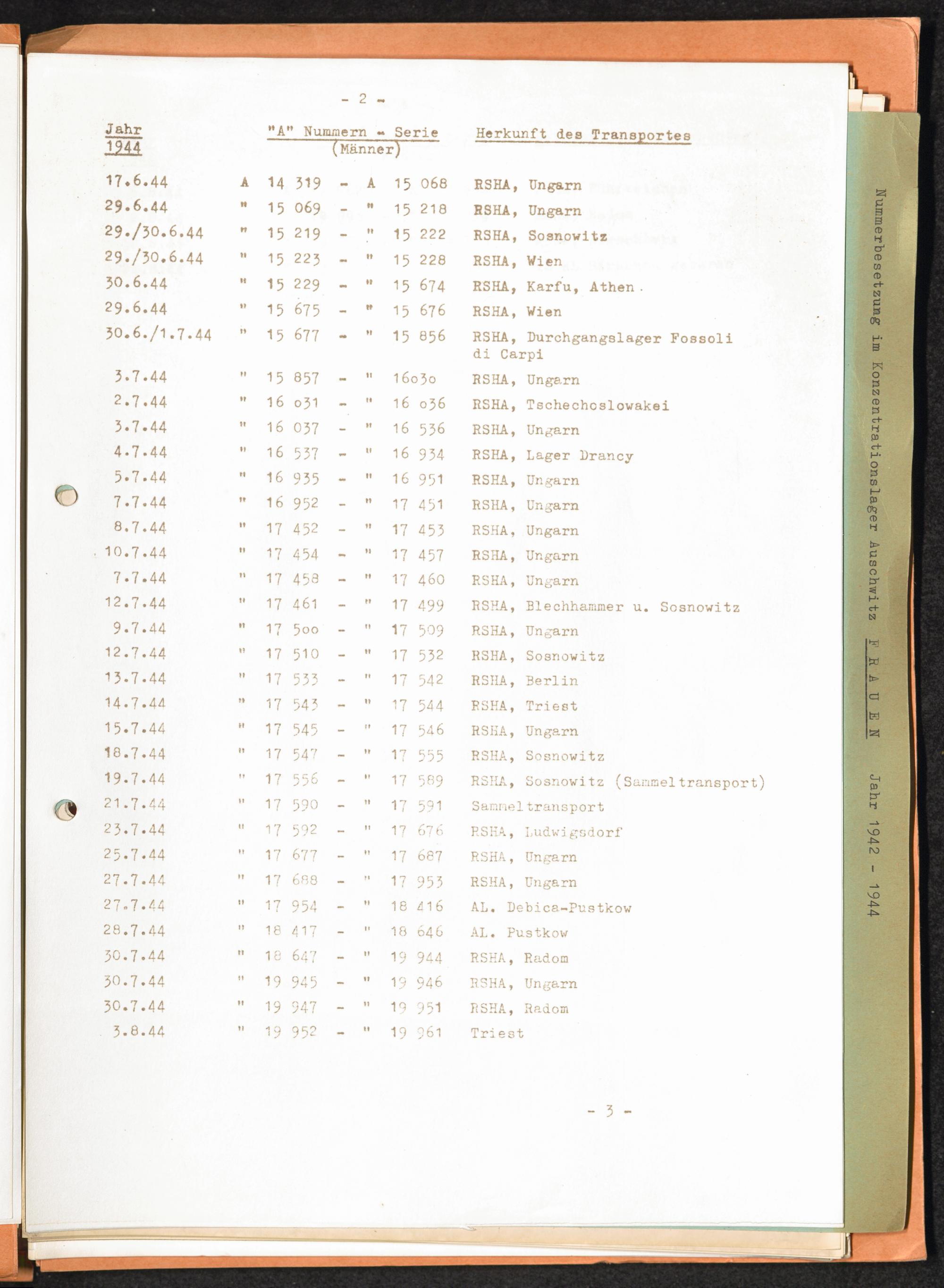 Häftlingsnummernzuteilungen / International Tracing Service (ITS)Transport-Übersichten (nach KL Au) / International Tracing Service (ITS)Häftlingsnummernverteilung in Konzentrationslagern / International Tracing Service (ITS)