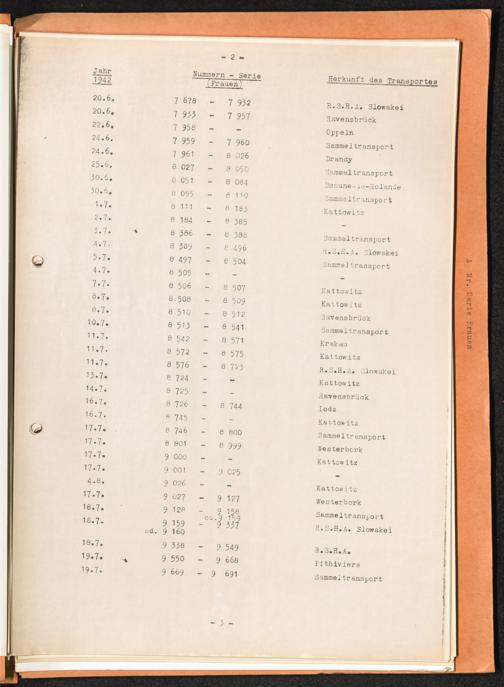 Häftlingsnummernzuteilungen Nummerbesetzung im Konzentrationslager Auschwitz. Frauen Jahr 1942 - 1944