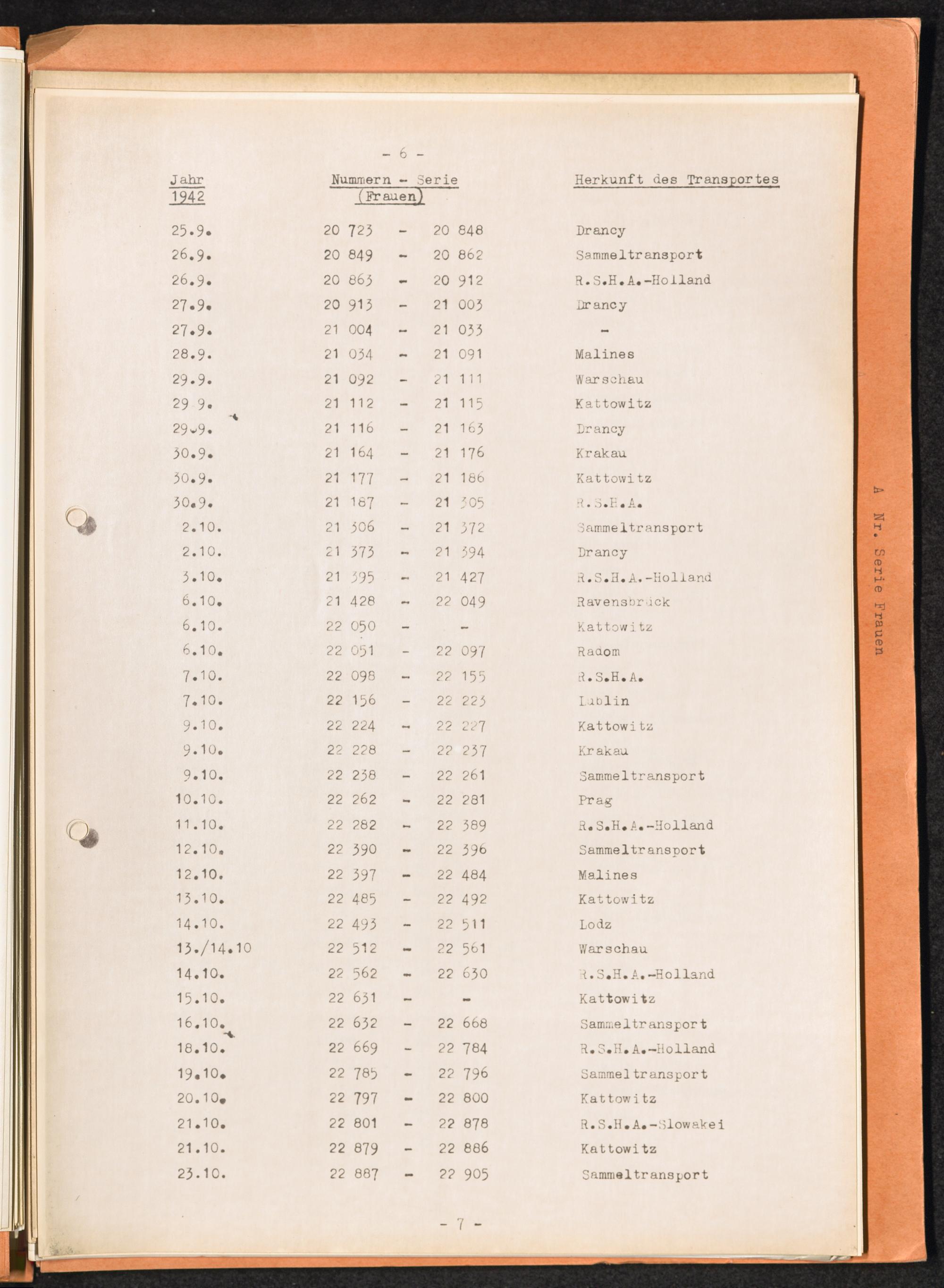 Häftlingsnummernzuteilungen Nummerbesetzung im Konzentrationslager Auschwitz. Frauen Jahr 1942 - 1944