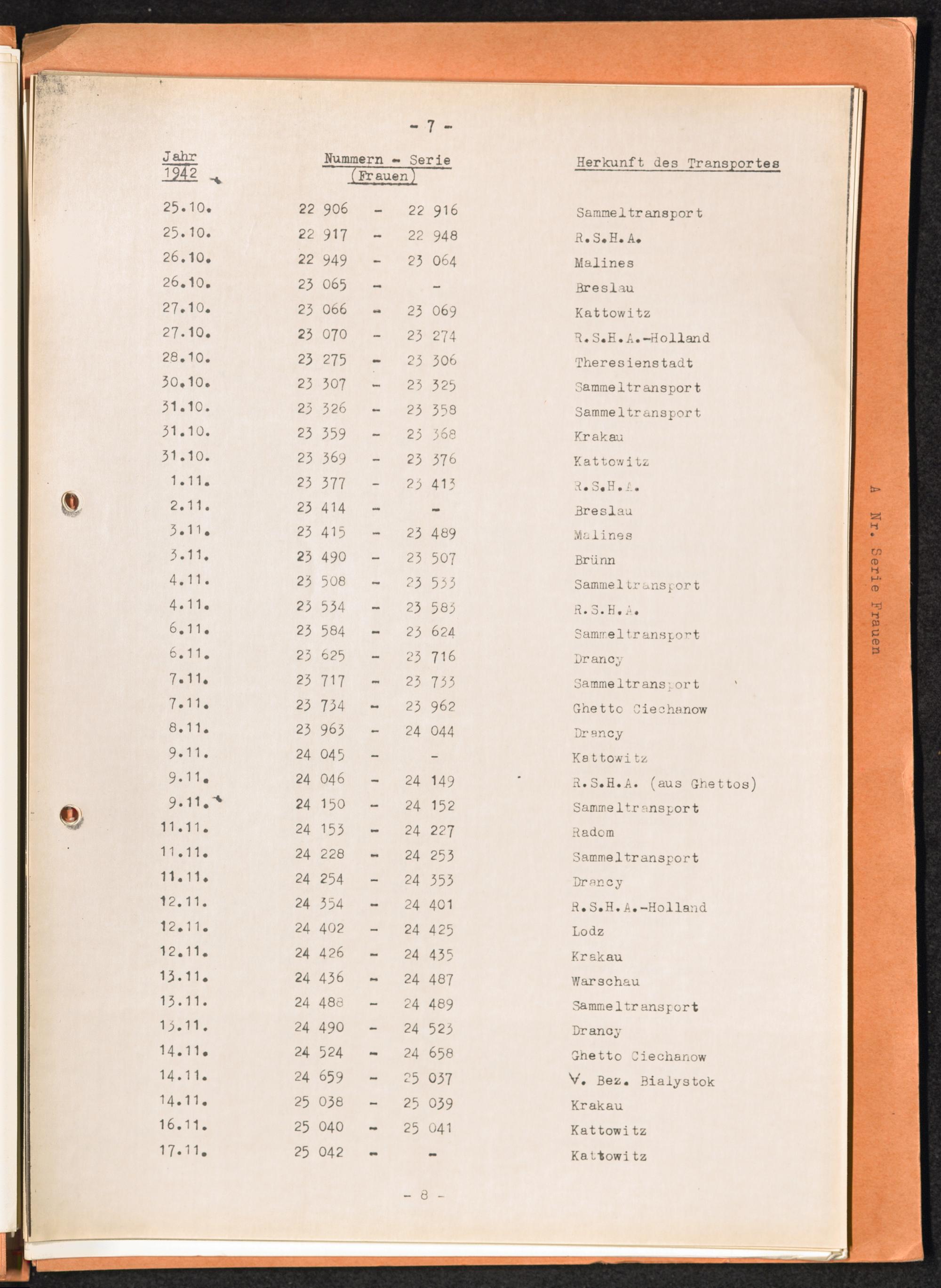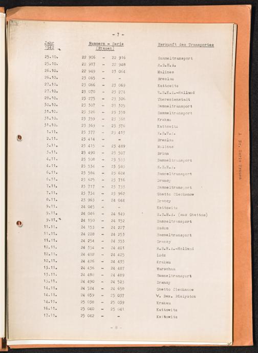 Häftlingsnummernzuteilungen Nummerbesetzung im Konzentrationslager Auschwitz. Frauen Jahr 1942 - 1944