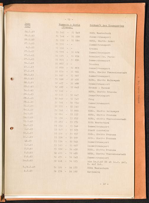 Häftlingsnummernzuteilungen Nummerbesetzung im Konzentrationslager Auschwitz. Frauen Jahr 1942 - 1944