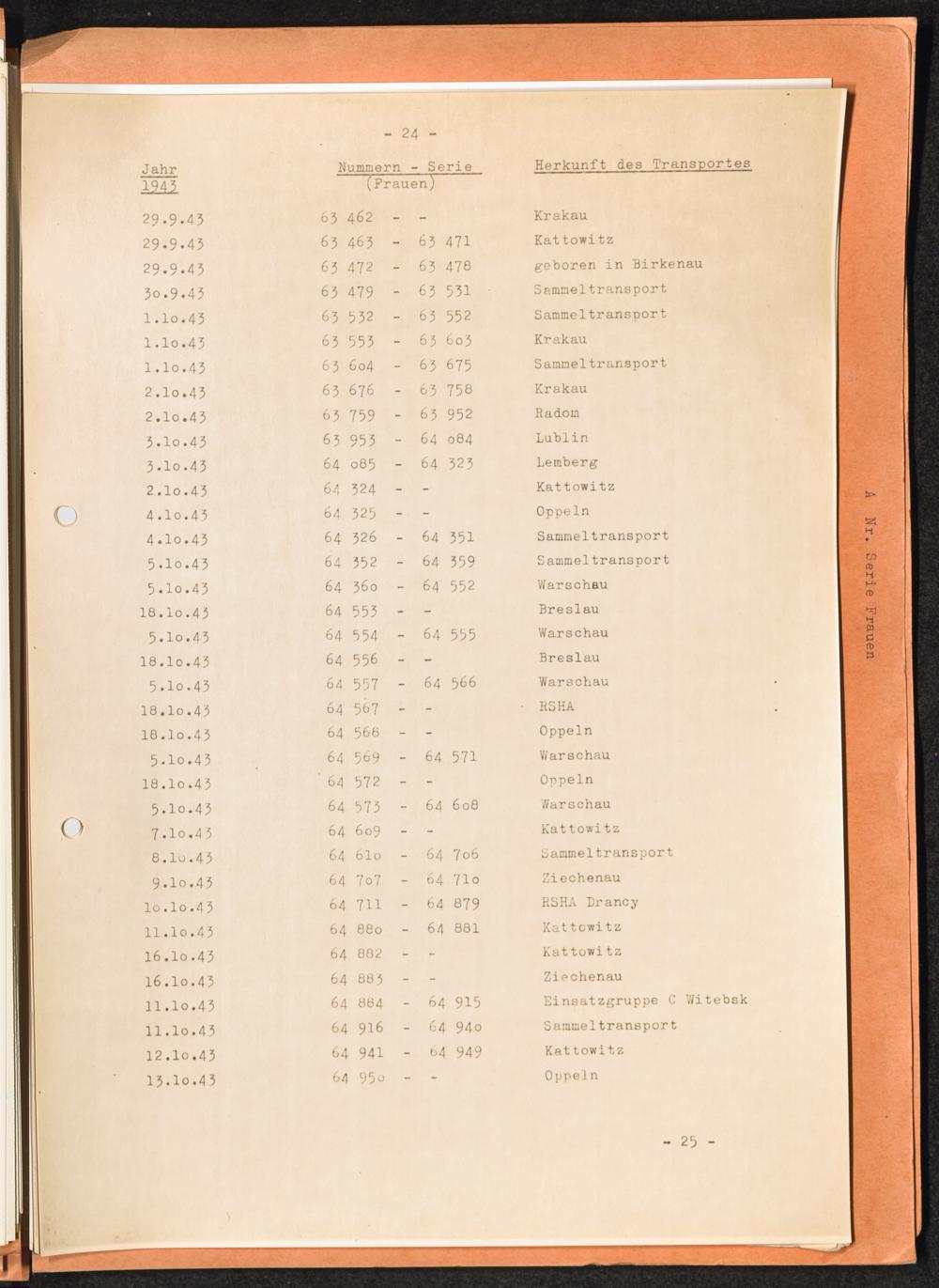 Häftlingsnummernzuteilungen Nummerbesetzung im Konzentrationslager Auschwitz. Frauen Jahr 1942 - 1944