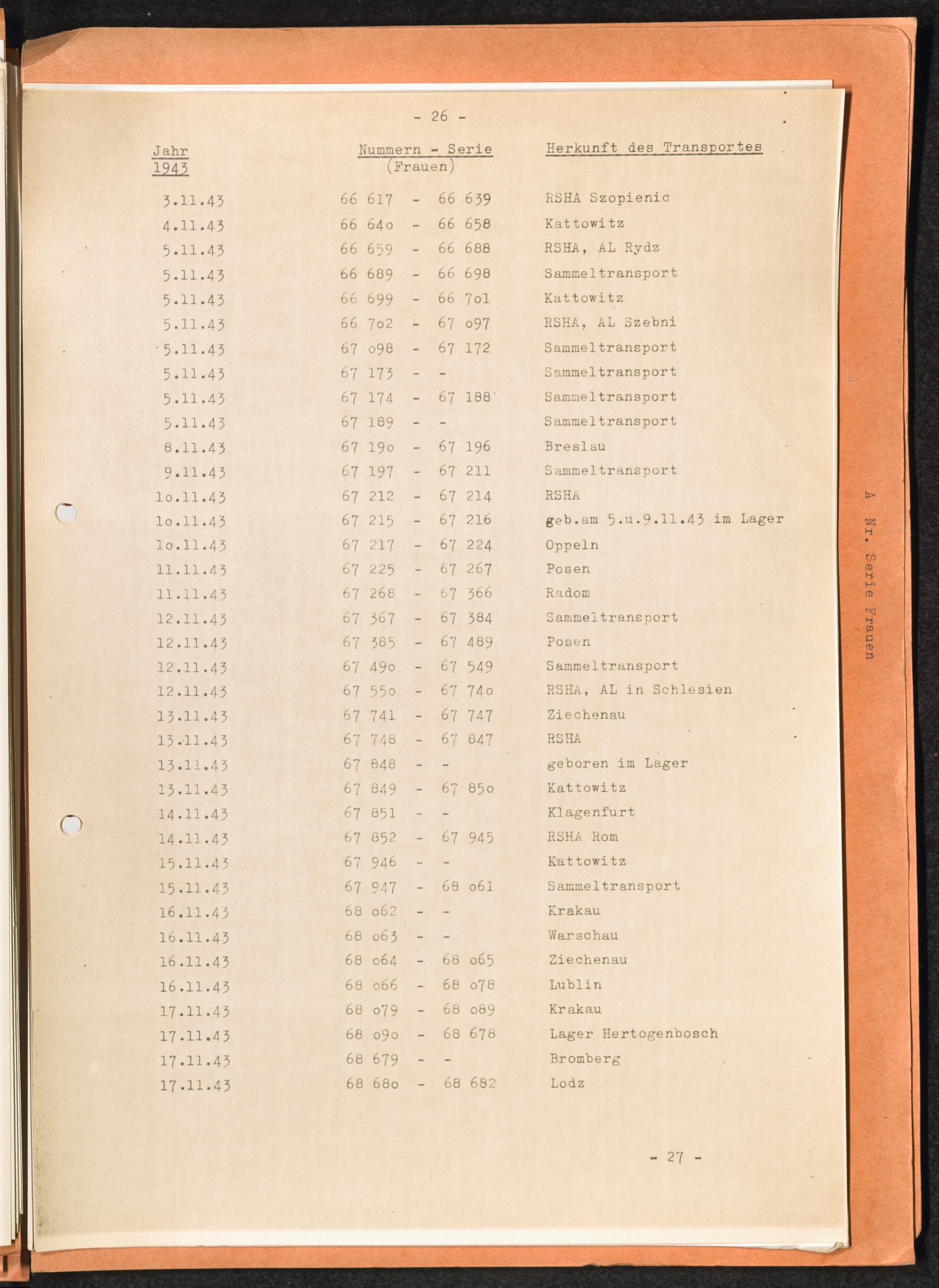 Häftlingsnummernzuteilungen Nummerbesetzung im Konzentrationslager Auschwitz. Frauen Jahr 1942 - 1944