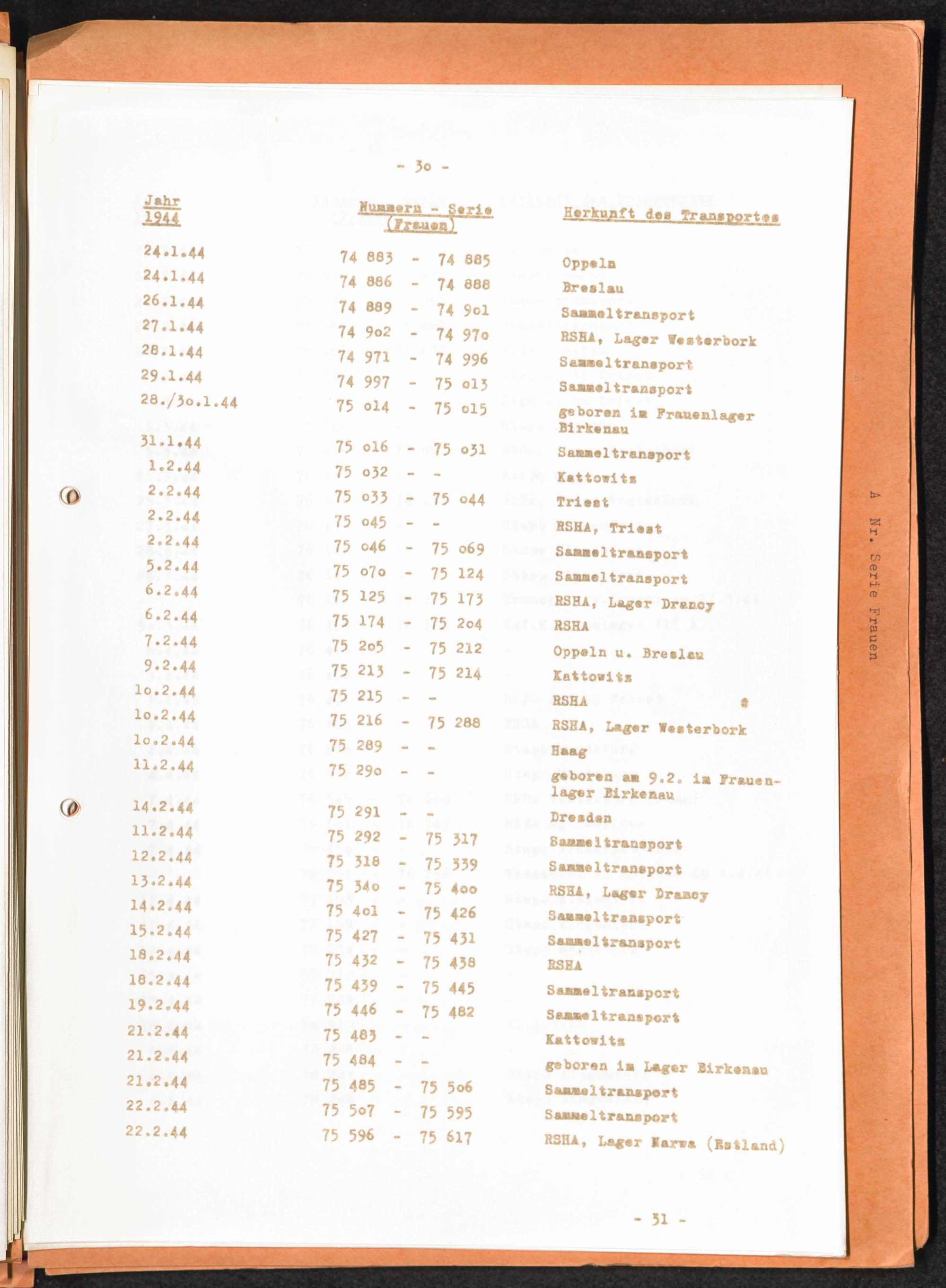 Häftlingsnummernzuteilungen / International Tracing Service (ITS)Transport-Übersichten (nach KL Au) / International Tracing Service (ITS)Häftlingsnummernverteilung in Konzentrationslagern / International Tracing Service (ITS)
