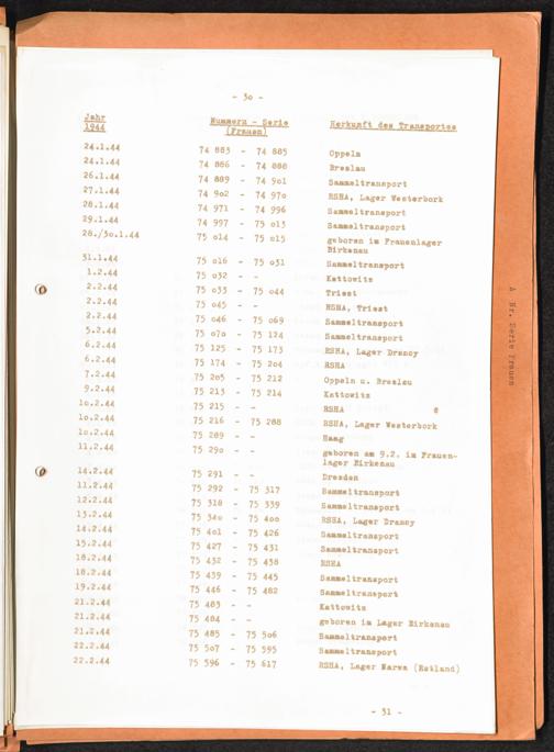 Häftlingsnummernzuteilungen Nummerbesetzung im Konzentrationslager Auschwitz. Frauen Jahr 1942 - 1944