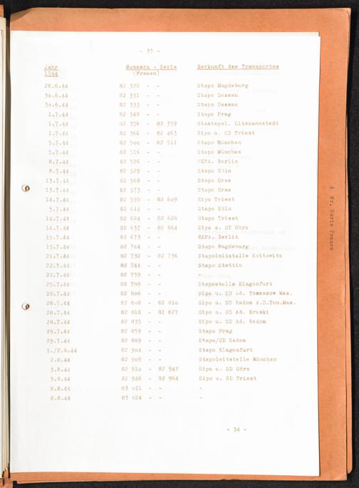 Häftlingsnummernzuteilungen Nummerbesetzung im Konzentrationslager Auschwitz. Frauen Jahr 1942 - 1944