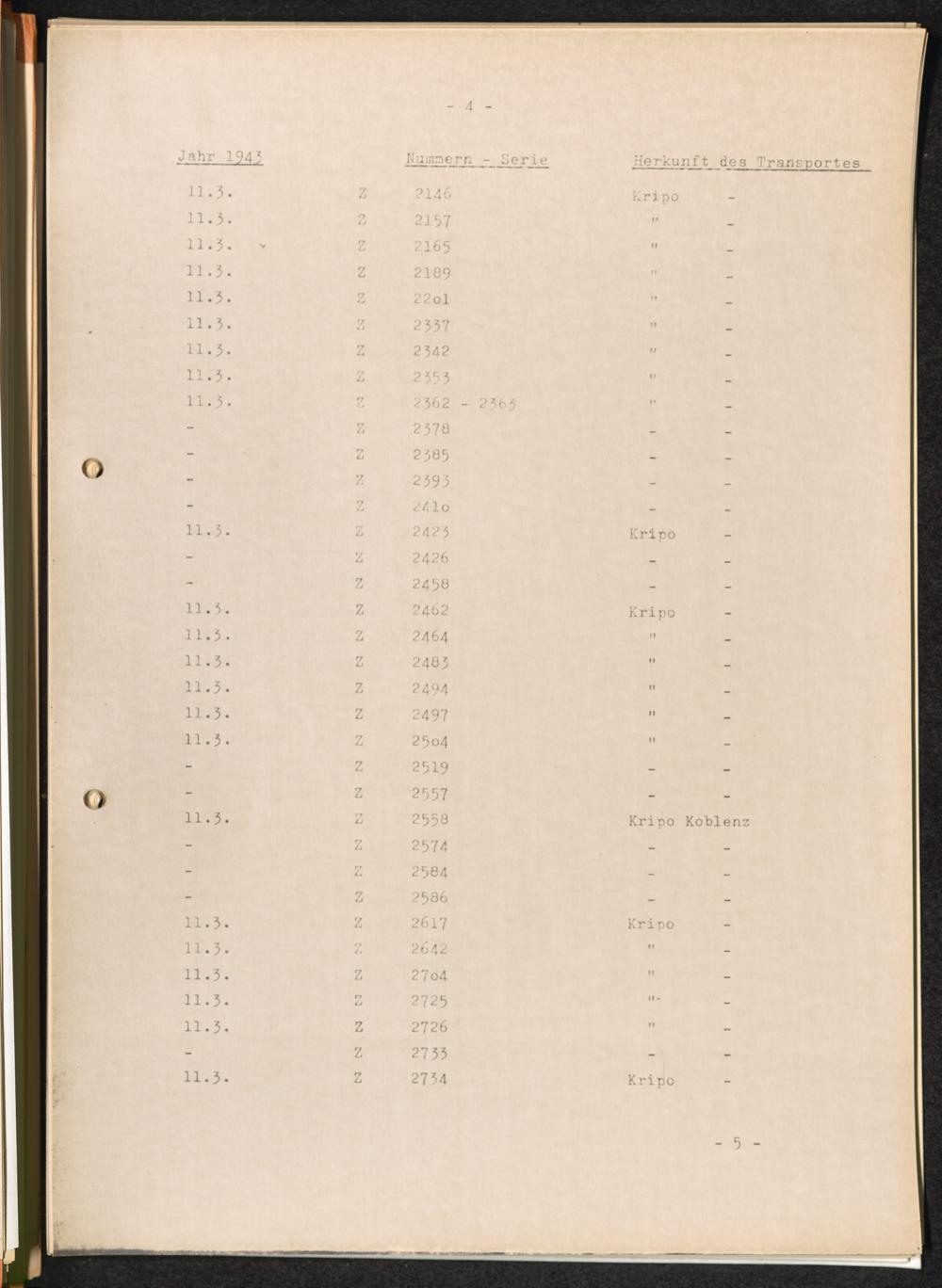 Häftlingsnummernzuteilungen / International Tracing Service (ITS)Transport-Übersichten (nach KL Au) / International Tracing Service (ITS)Häftlingsnummernverteilung in Konzentrationslagern / International Tracing Service (ITS)