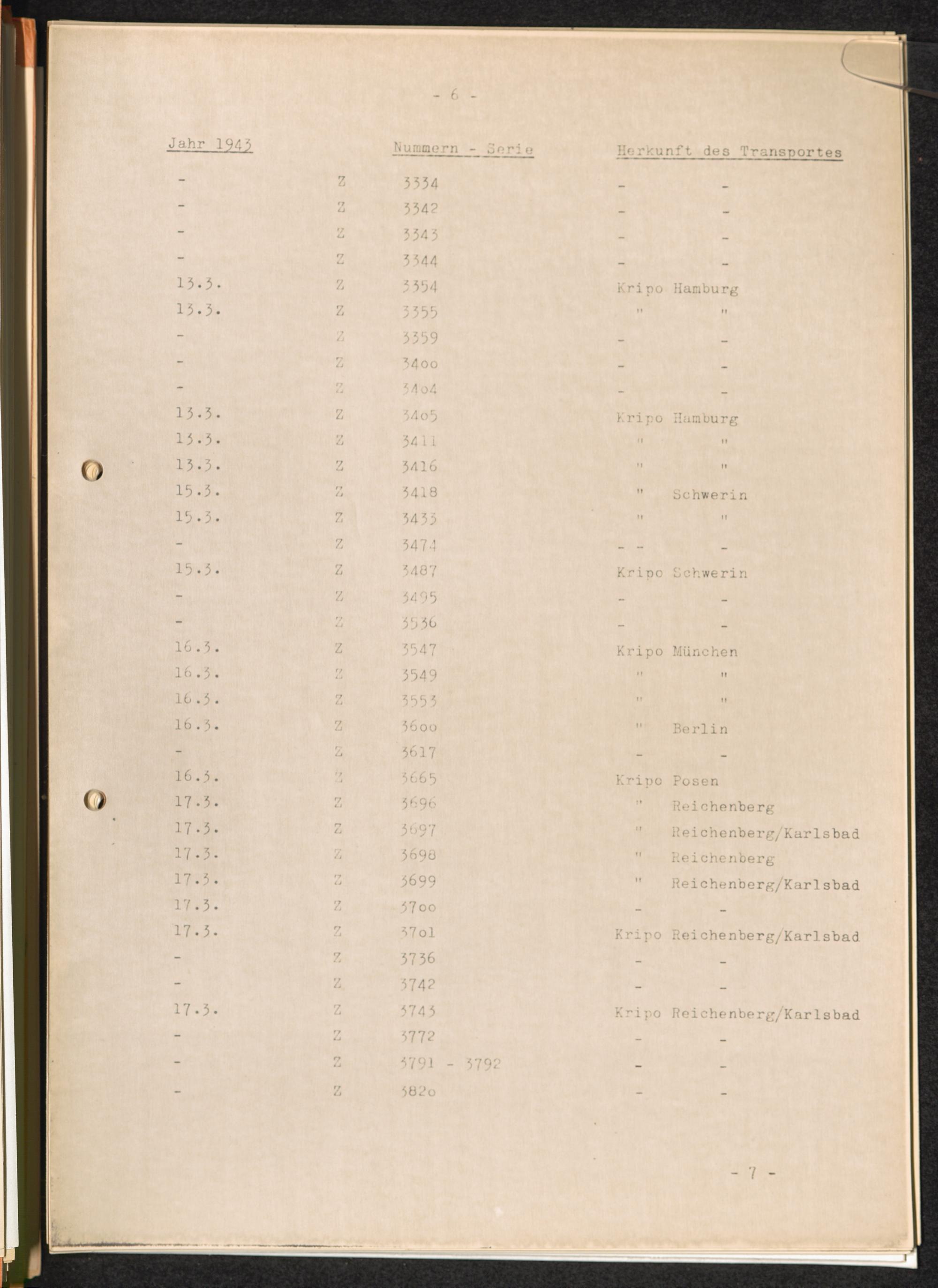 Häftlingsnummernzuteilungen Z Zigeuner